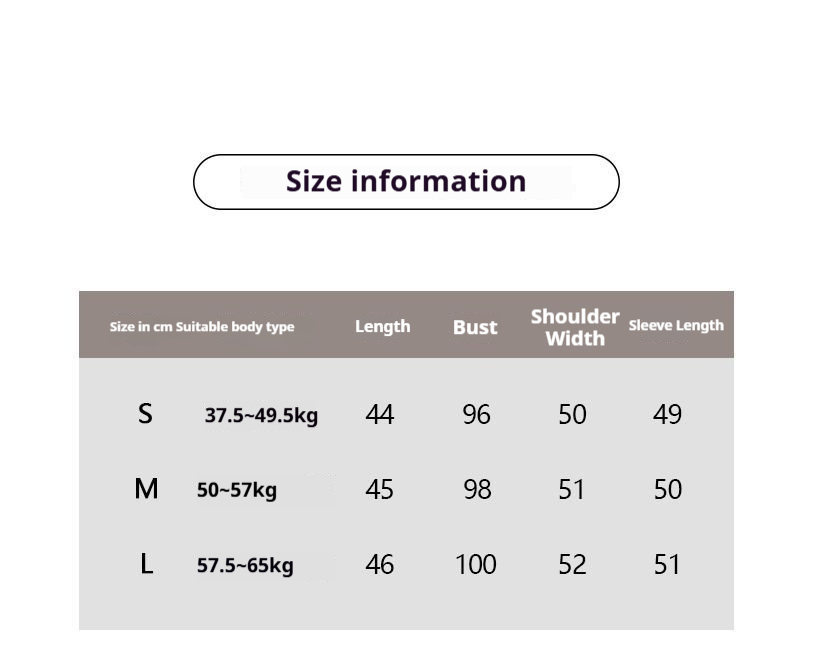 Size: S recommended 75 to 49.50, M recommended 100 to 55.00, L recommended 111 to 60.00kg