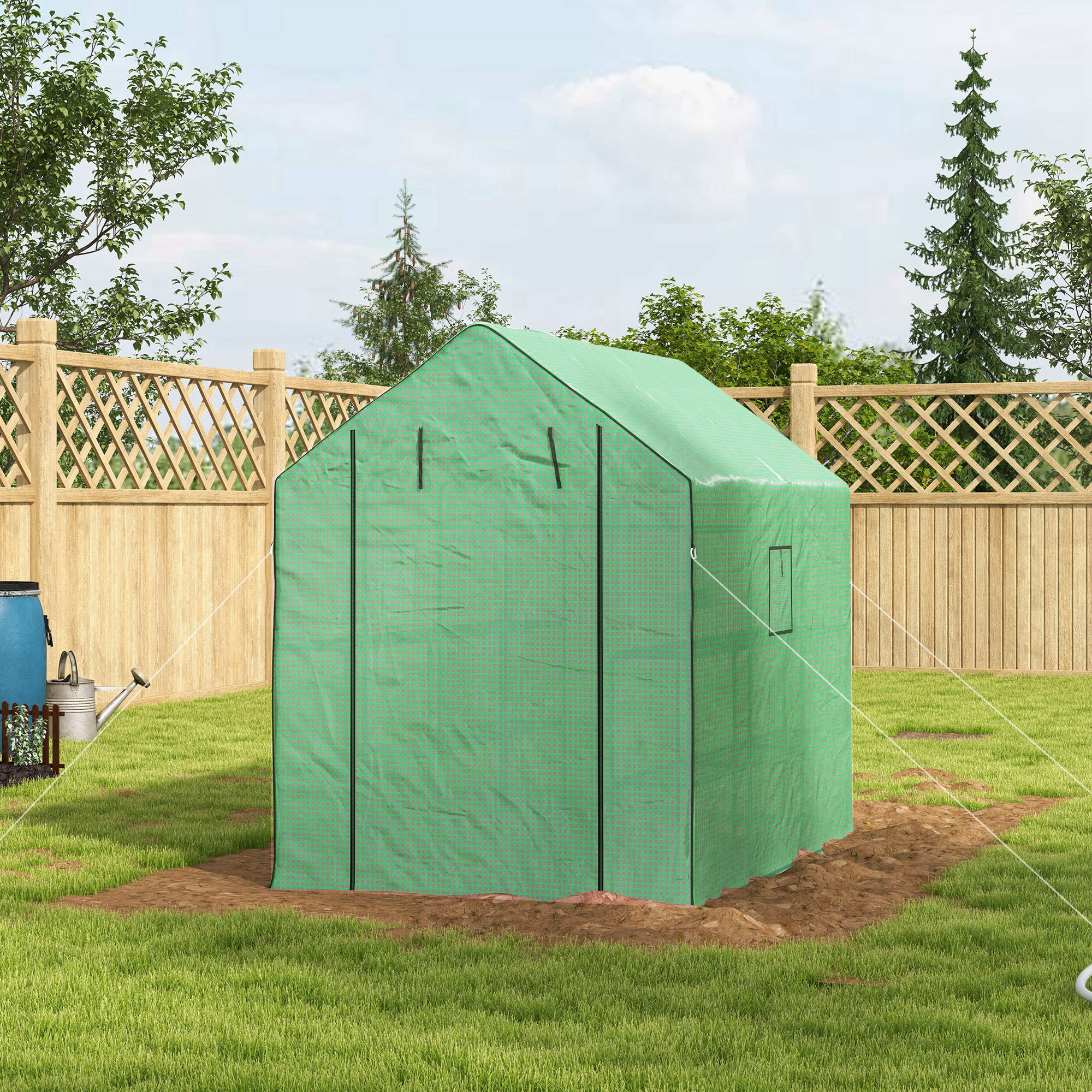 This small plastic greenhouse with shelves is suitable for gardeners of all levels. With the UV-resistant plastic cover, roll-up door and three mesh windows, it is a safe shelter inside, allowing you to create a desirable temperature and humidity for total control. Four shelves on each side allow room for holding and organising pots and trays.
