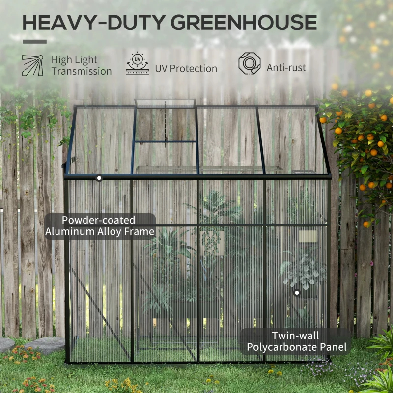 Walk-in Polycarbonate Greenhouse, Lean-to Aluminum Green House With Rain Gutter And Foundation, BlackMultiple Packages Shipped. Please Pay Attention To The Dimensions And Weight In The Details.