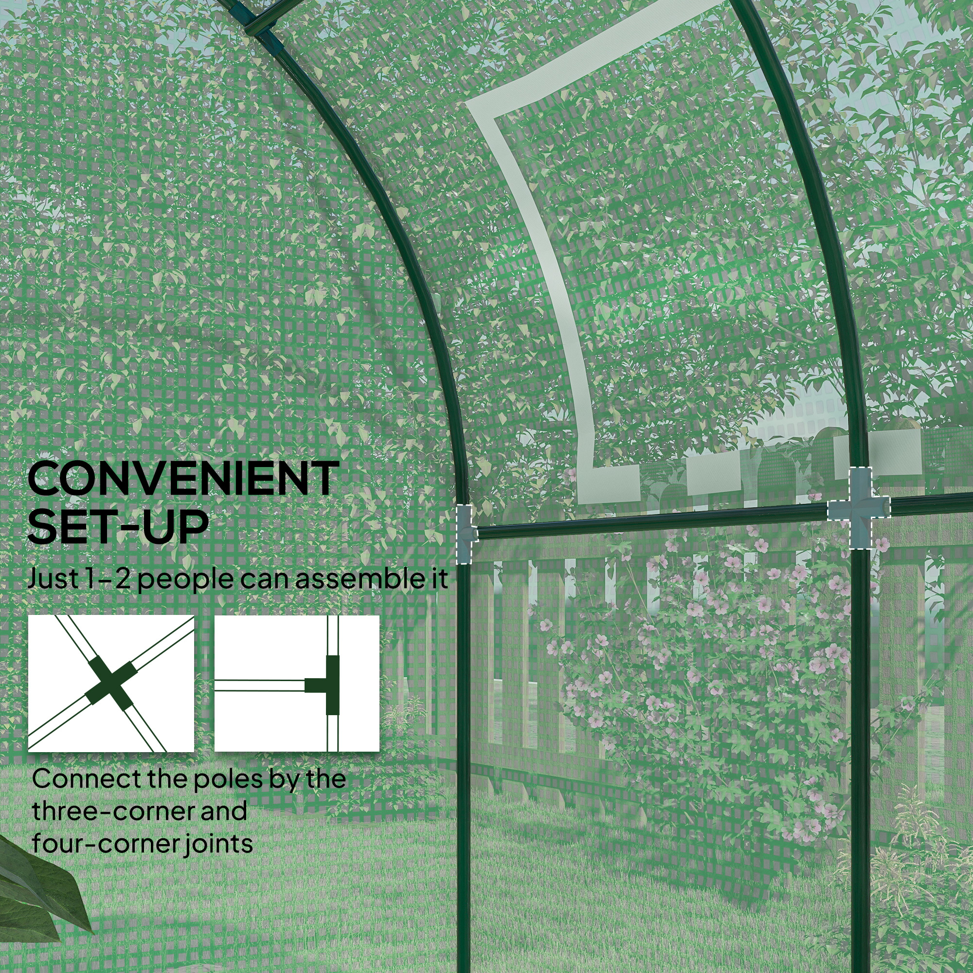 Extend the growing season, this year and beyond - thanks to this portable greenhouse. A steel frame for it to stay in shape, with guy ropes and stakes included to pin to the ground. The 6ft x 6ft size is great for holding plenty of plants - the open design means you can set it up inside how you want it. Comes completed with a zipped roll-up door and side roll-up window; easy access and ventilation, whenever.