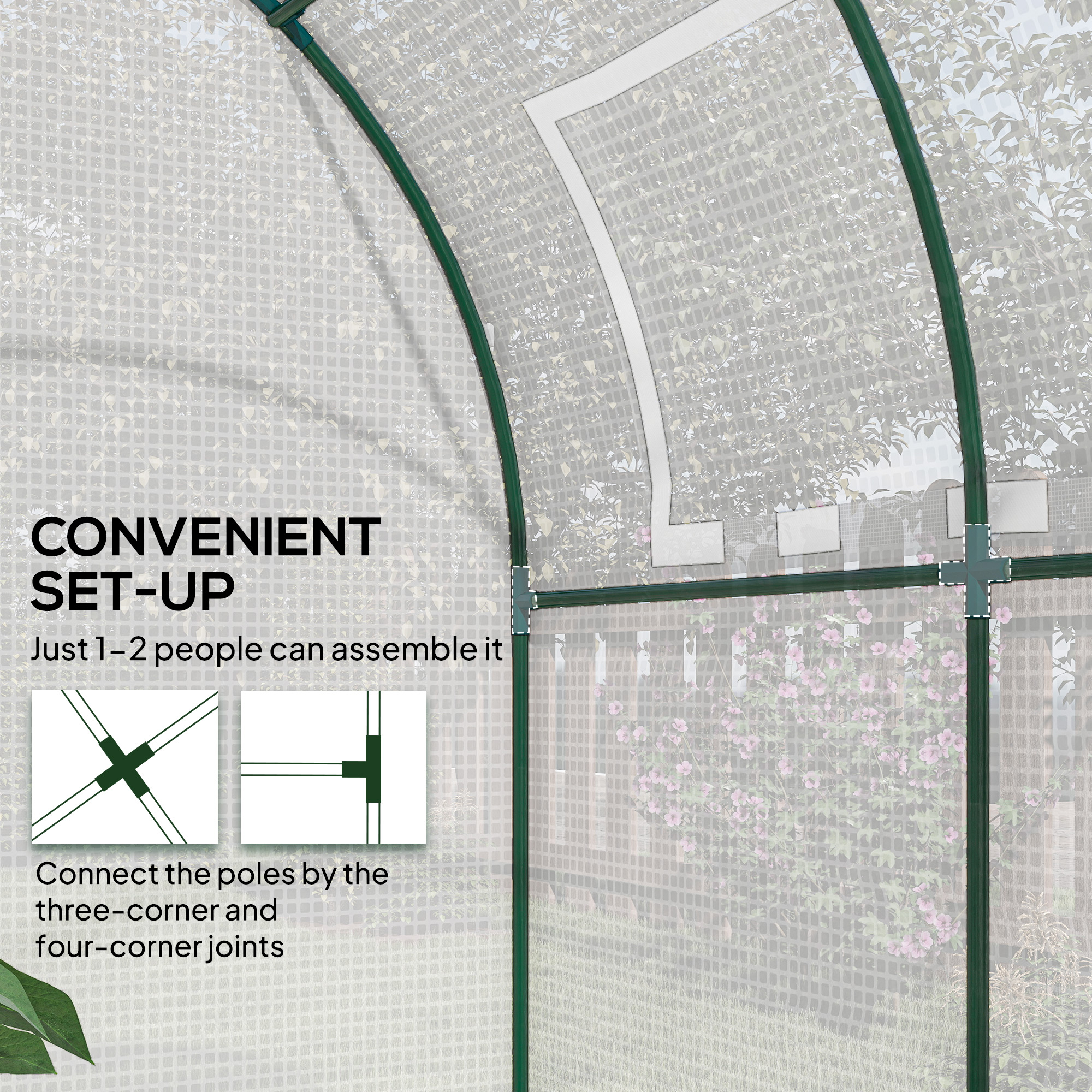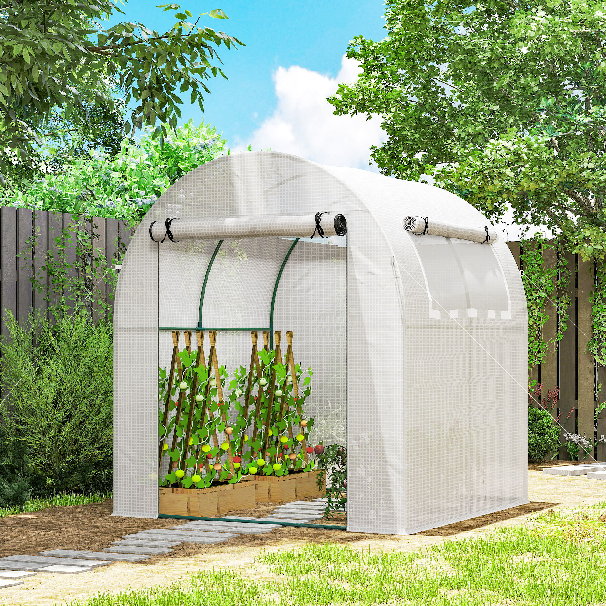 Extend the growing season, this year and beyond - thanks to this portable greenhouse. A steel frame for it to stay in shape, with guy ropes and stakes included to pin to the ground. The 6ft x 6ft size is great for holding plenty of plants - the open design means you can set it up inside how you want it. Comes completed with a zipped roll-up door and side roll-up window; easy access and ventilation, whenever.