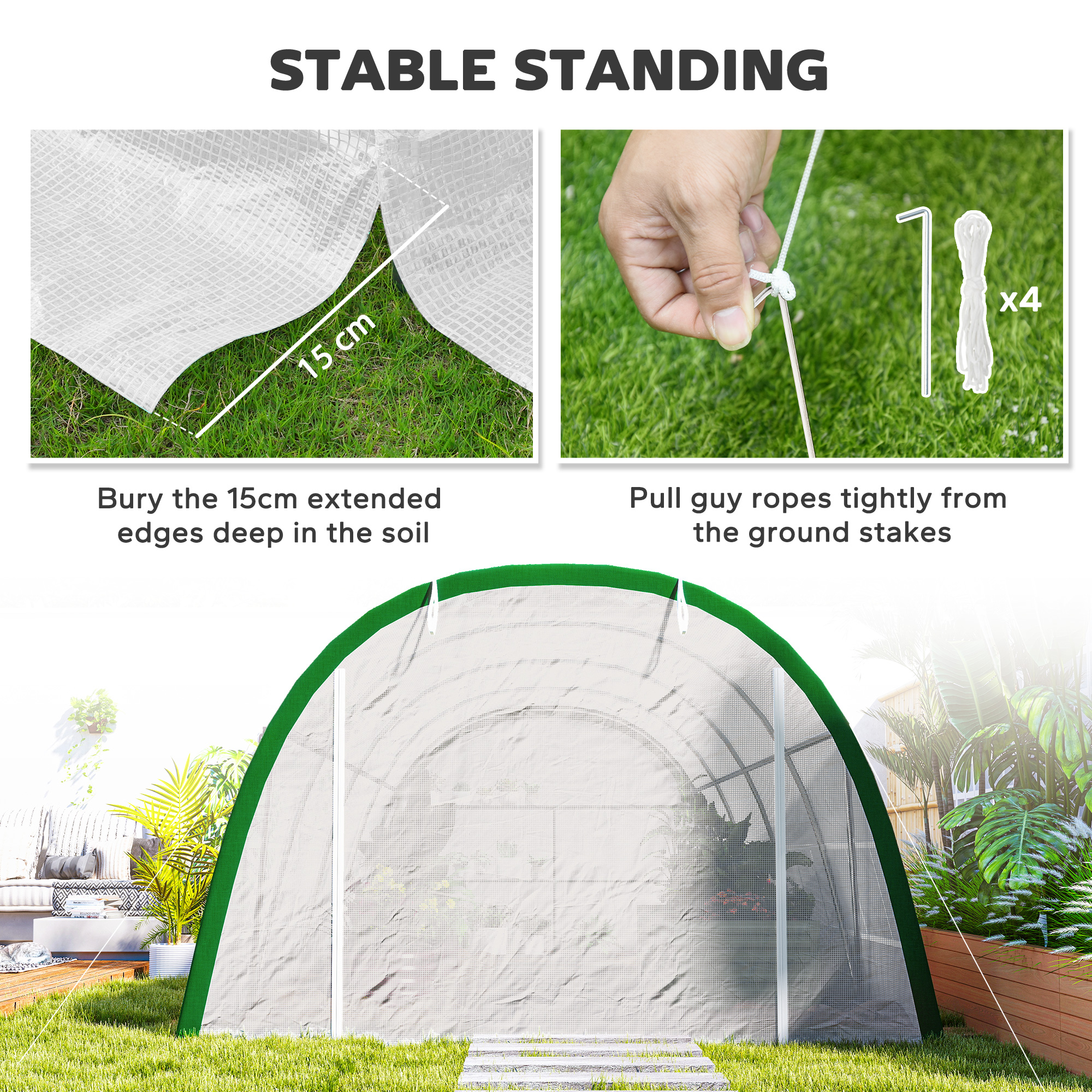 Extend the growing season, this year and beyond - thanks to this polytunnel greenhouse. A galvanised steel frame for it to stay in shape, with guy ropes and stakes included to pin to the ground. The spacious inner space is great for holding plenty of plants - the open design means you can set it up inside how you want it. Comes completed with zipped roll-up doors and eight mesh windows; easy access and ventilation, whenever.