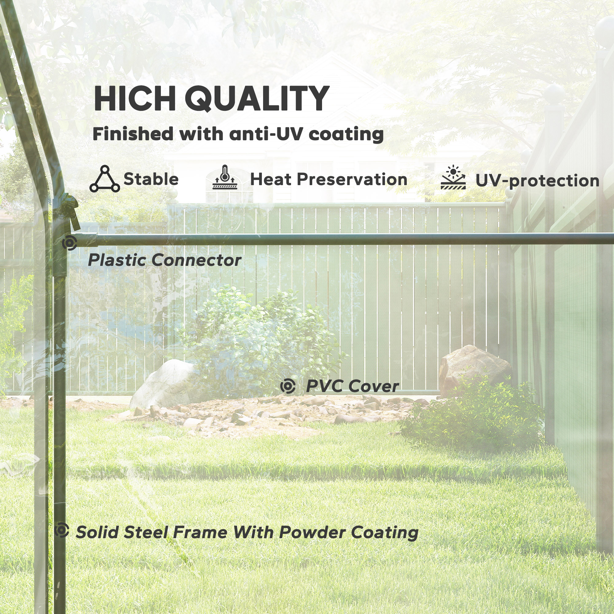 • UV-resistant PE plastic cover for protection from damaging sun rays