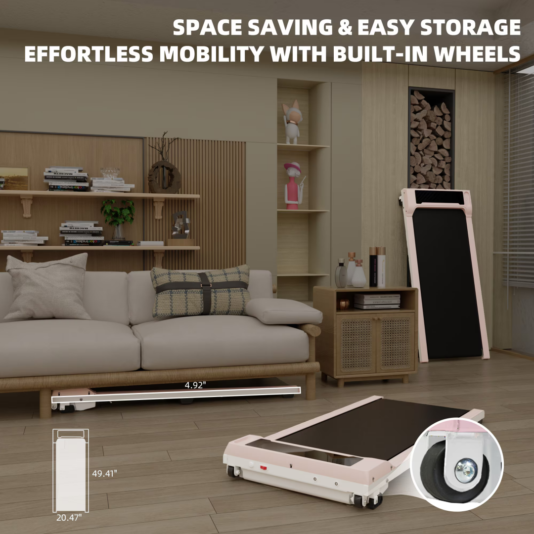 ✅ Lightweight & Space-Saving Design – Compact and portable, easy to move and store. Perfect for small spaces at home or in the office, whether as a home treadmill or an under-desk walking pad.