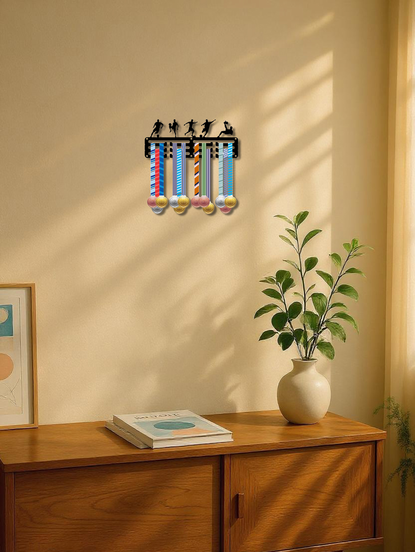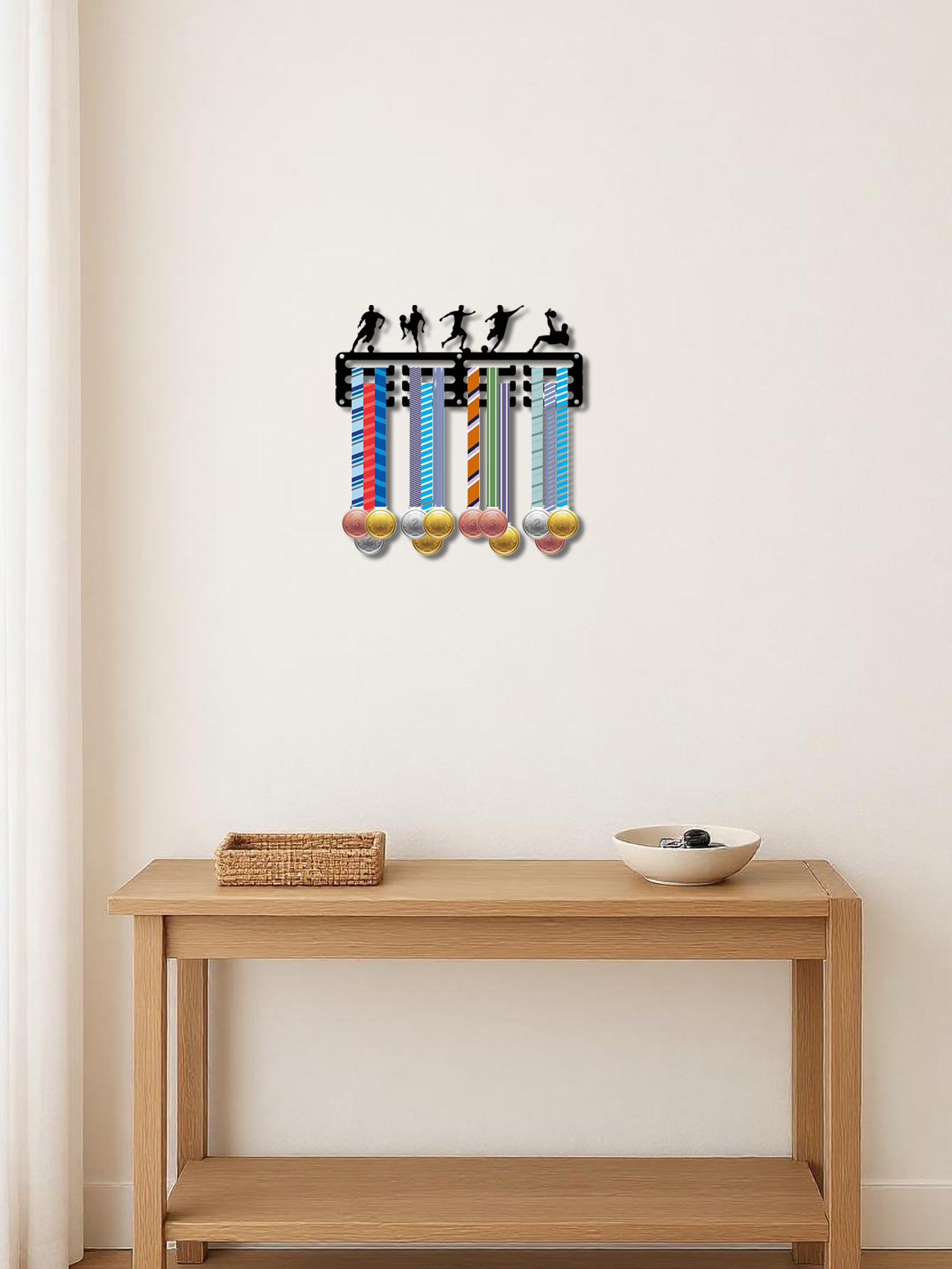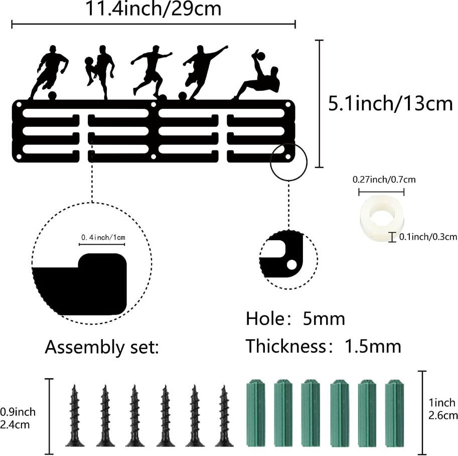 Wall - Fixed Medal Holder for Football Matches, Running Events, Gymnastics Tourneys, Swimming Competitions - Badge Display Rack for Homes, Tourneys, Medal Winners - Iron Art, Utility Hooks.
