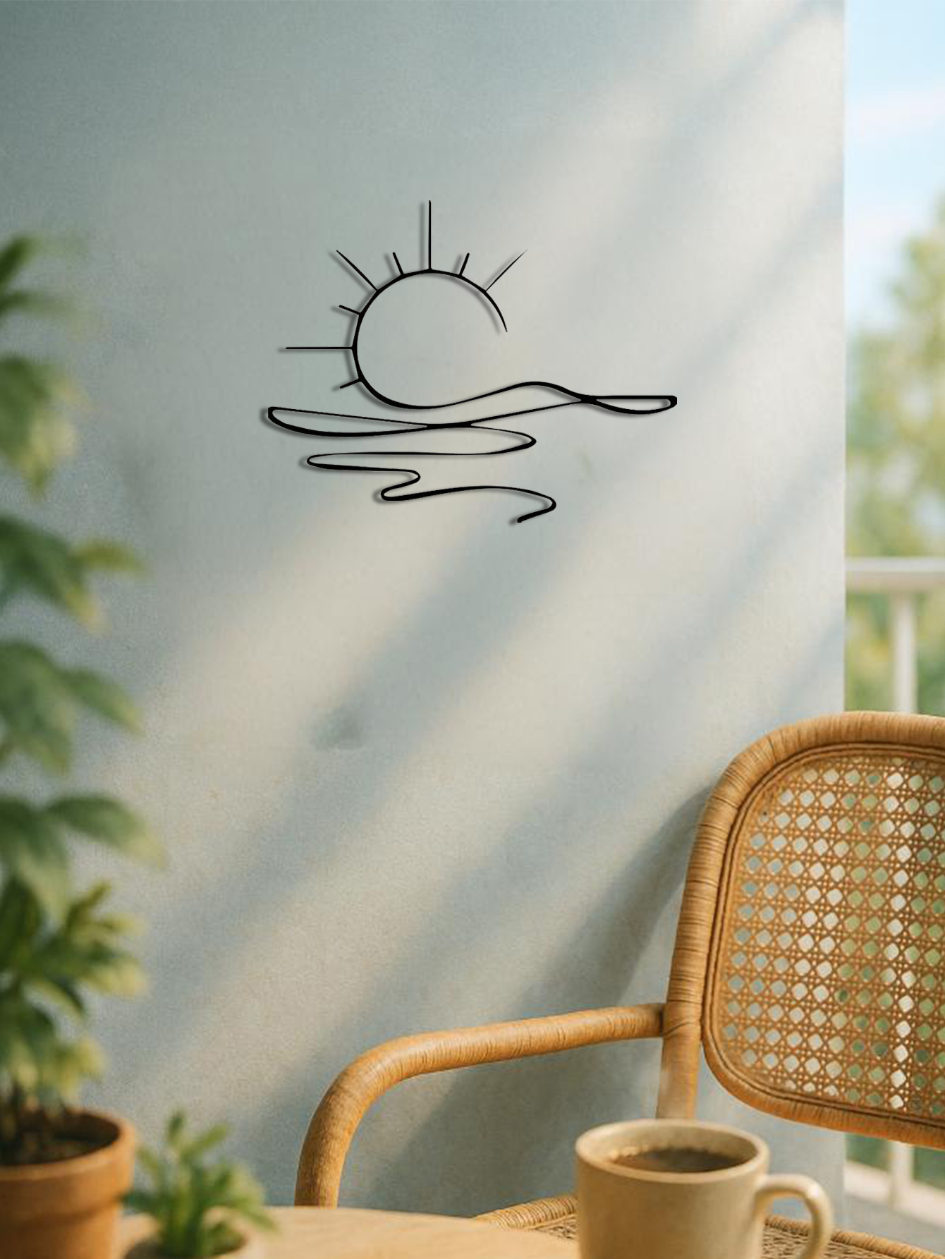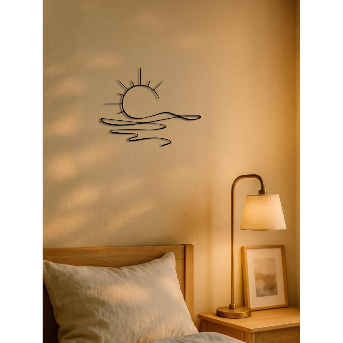 "Minimalist Sunrise Wall Art – Modern Metal Iron Wall Decor, Abstract Sun Line Design for Home | Elegant Housewarming & Wedding Gift, Versatile for Living Room, Bedroom, Bathroom, Kitchen & Halloween Decor"