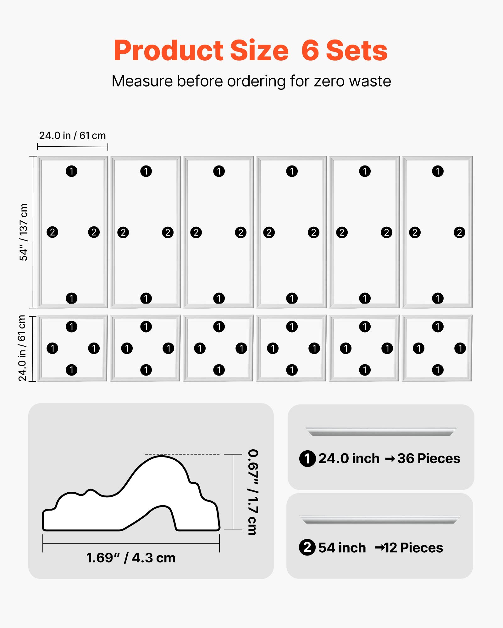 Wall Molding 6 Pack, Wainscoting Panels Kit, Lightweight Paintable Polystyrene, Easy To Install, Waterproof Accent Wall Trim For Interior Décor Living Room, Bedroom, White (24x54 + 24x24 In)