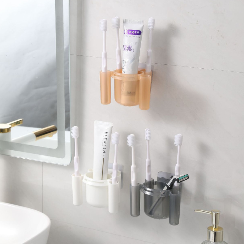 Wall-mounted Bathroom Toothbrush Holder Punch-free Toilet Drain Toothpaste Rack