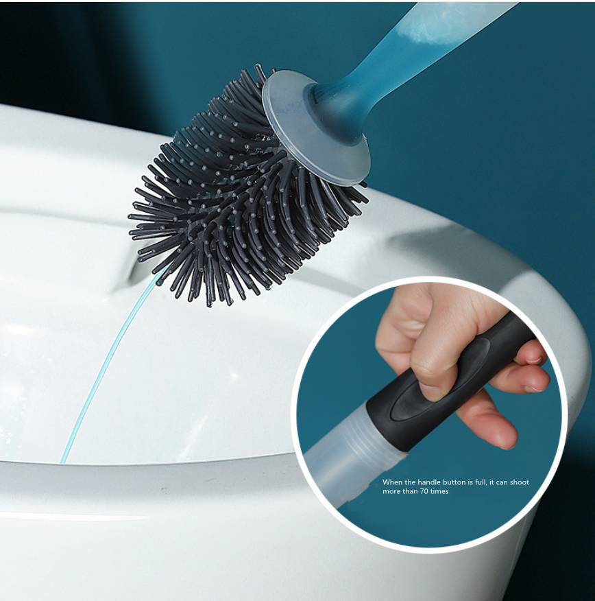 The toilet brush can store the toilet cleaner, and it is convenient and quick to inject the toilet cleaner with the faucet.