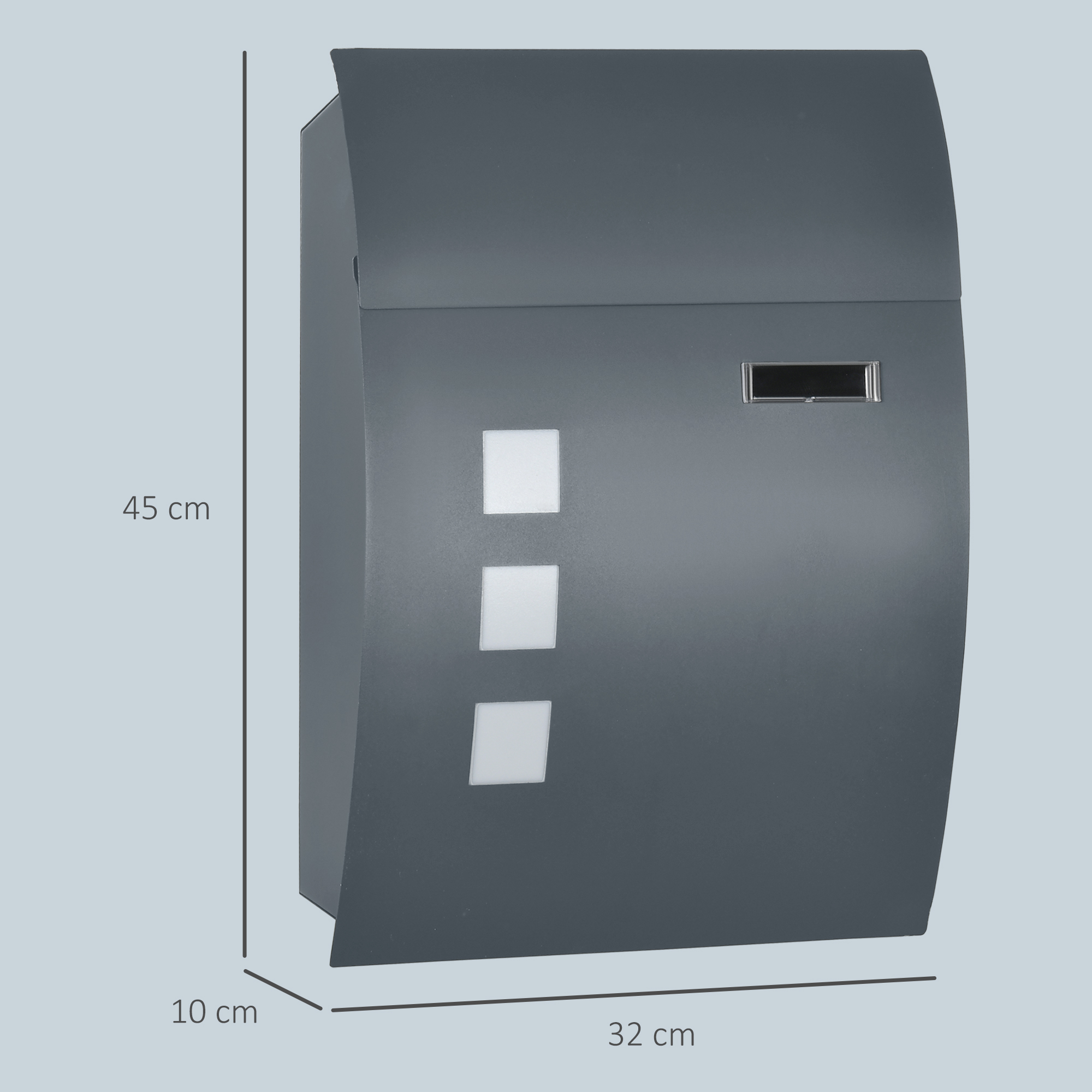 Get your post delivered to somewhere safe and stylish - this post box. Made from galvanised steel, structure is tough and durable - suitable for outdoor use. The 30cm long letter slot makes it easy to insert letters. It's safe and secure, too: lockable design gives you peace of mind that only you are able to access designated post. Comes with a name space, to assure your post is being delivered to the right person.