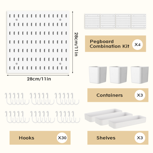 28x28cm-4 Board Includes: (28x28cm perforated board x4, container x2, middle partition x2, hook x30)