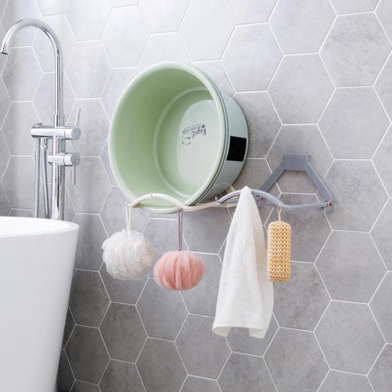 Wall Mounted Plastic Folding Washbasin Storage Rack Wall Hanging Bathroom Strong Sticker Hook Kitchen Storage Shelves Space Save