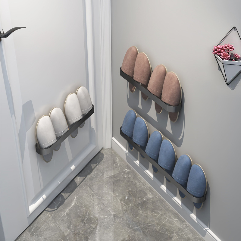 Wall-mounted Space Aluminum Bathroom Shoe Storage Rack With Drain Behind Household Door