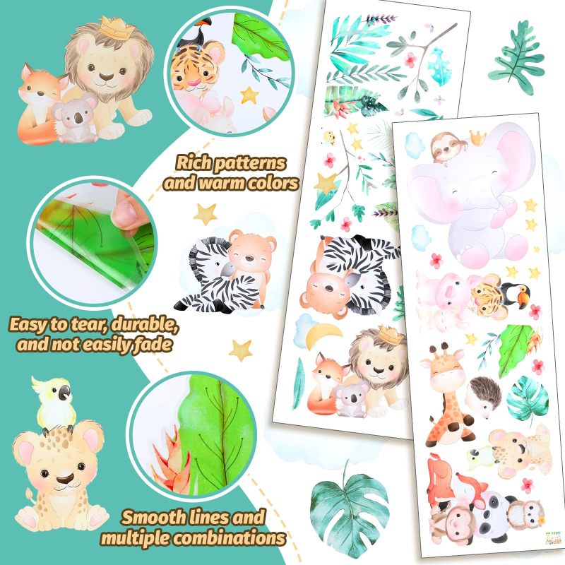 Product design: the wall decoration children's rooms are themed towards forest animals, including elephants, lions, pandas, giraffes, tigers, zebras, hamsters and other rich elements. Wall sticker children's room boys are designed with bright colours. Effectively attract children's attention and stimulate their imagination