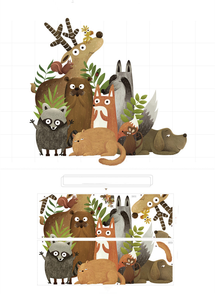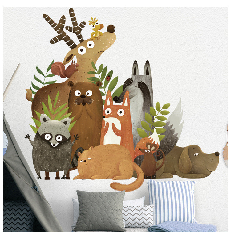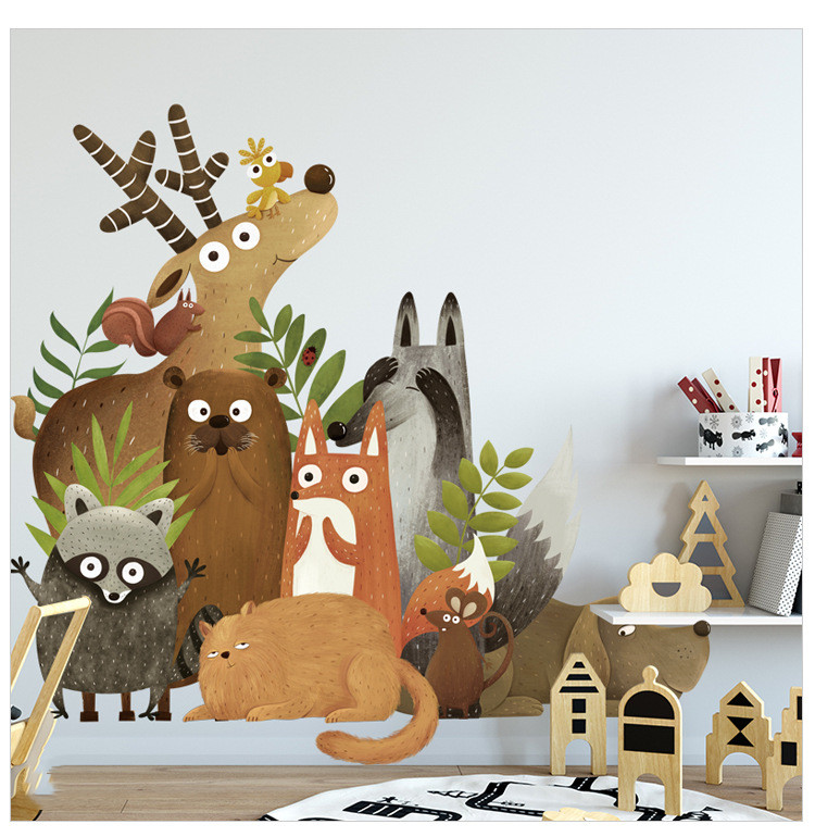 Wall Stickers Big Forest Animals Cartoon Children's Room Kindergarten Decoration Stickers