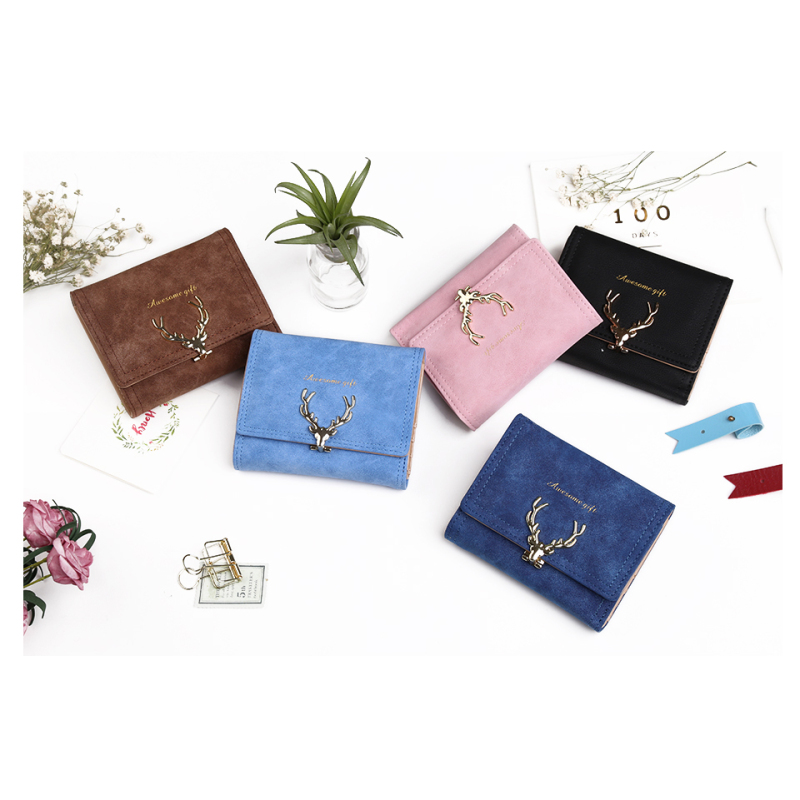 Wallet female cartoon deer short paragraph wallet PU coin purse student small hand bag card package