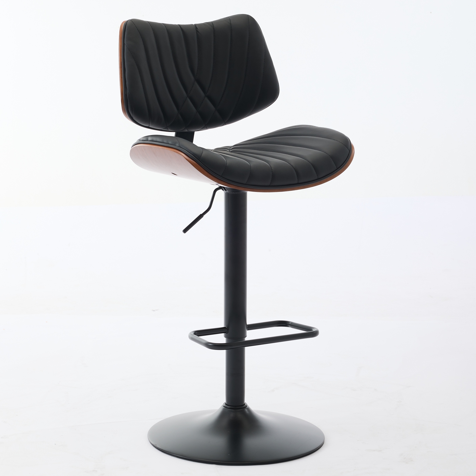 Product Name:Walnut Bentwood Bar Stools Mid Century Modern Adjustable Counter Height Black Leather Upholstered 360°Swivel Bar Chairs for Kitchen Island/Dining Room/Cafe, 1 chair/1carton,Black