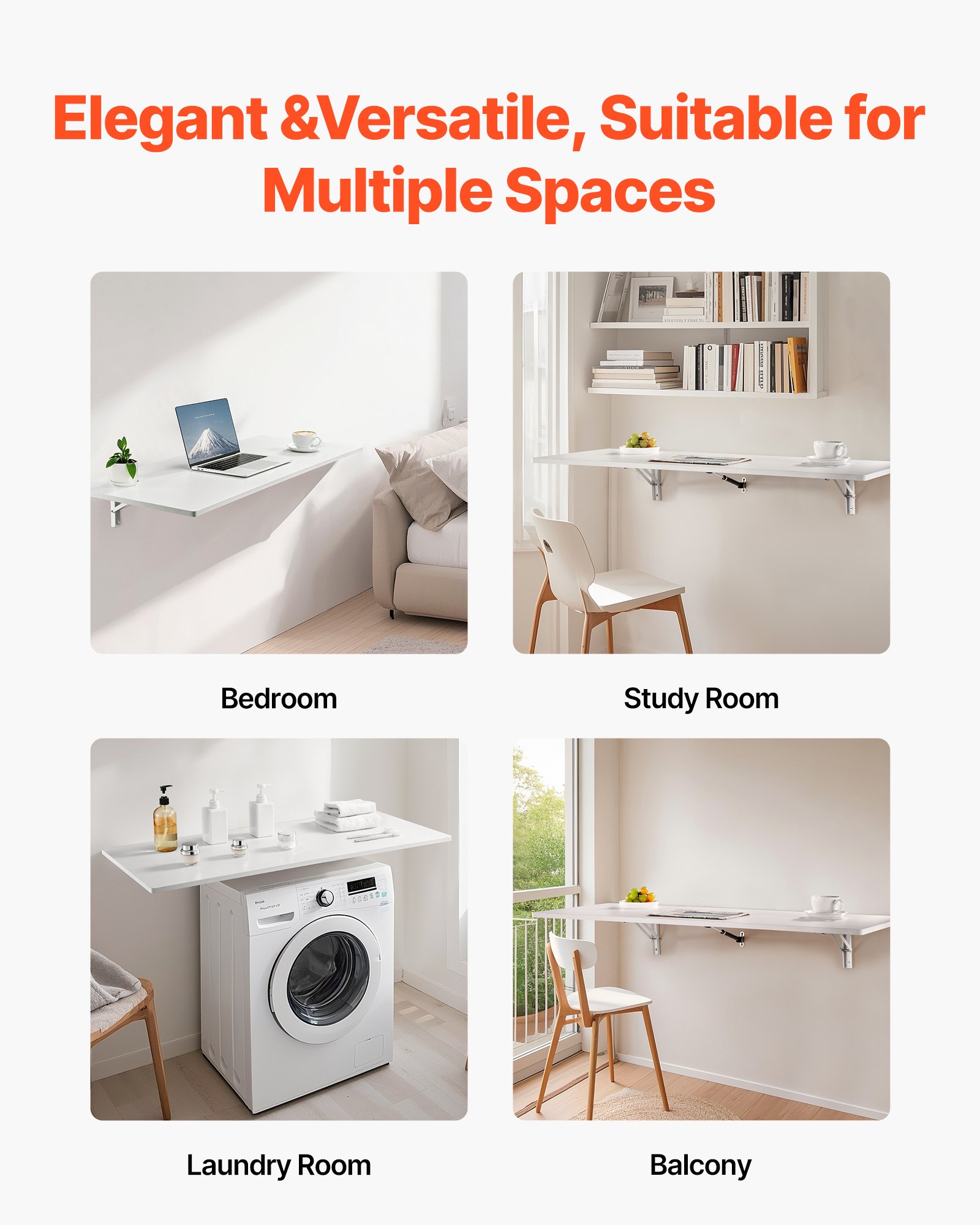 VEVOR Wandklapptisch, 110 x 46 cm, Klapptisch, schwebender Schreibtisch mit Eisenhalterung, zusammenklappbarer Schreibtisch für kleine Räume, Heimbüro, Esszimmer, Waschküche, Küche, Bar, weiß