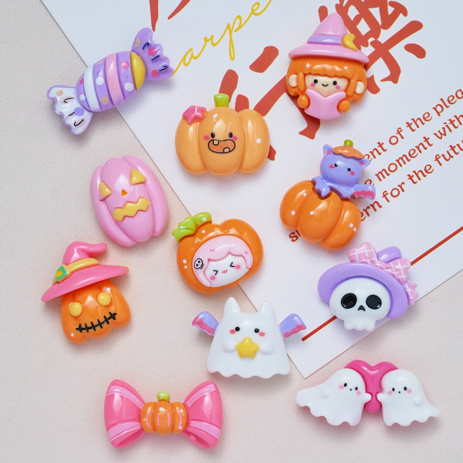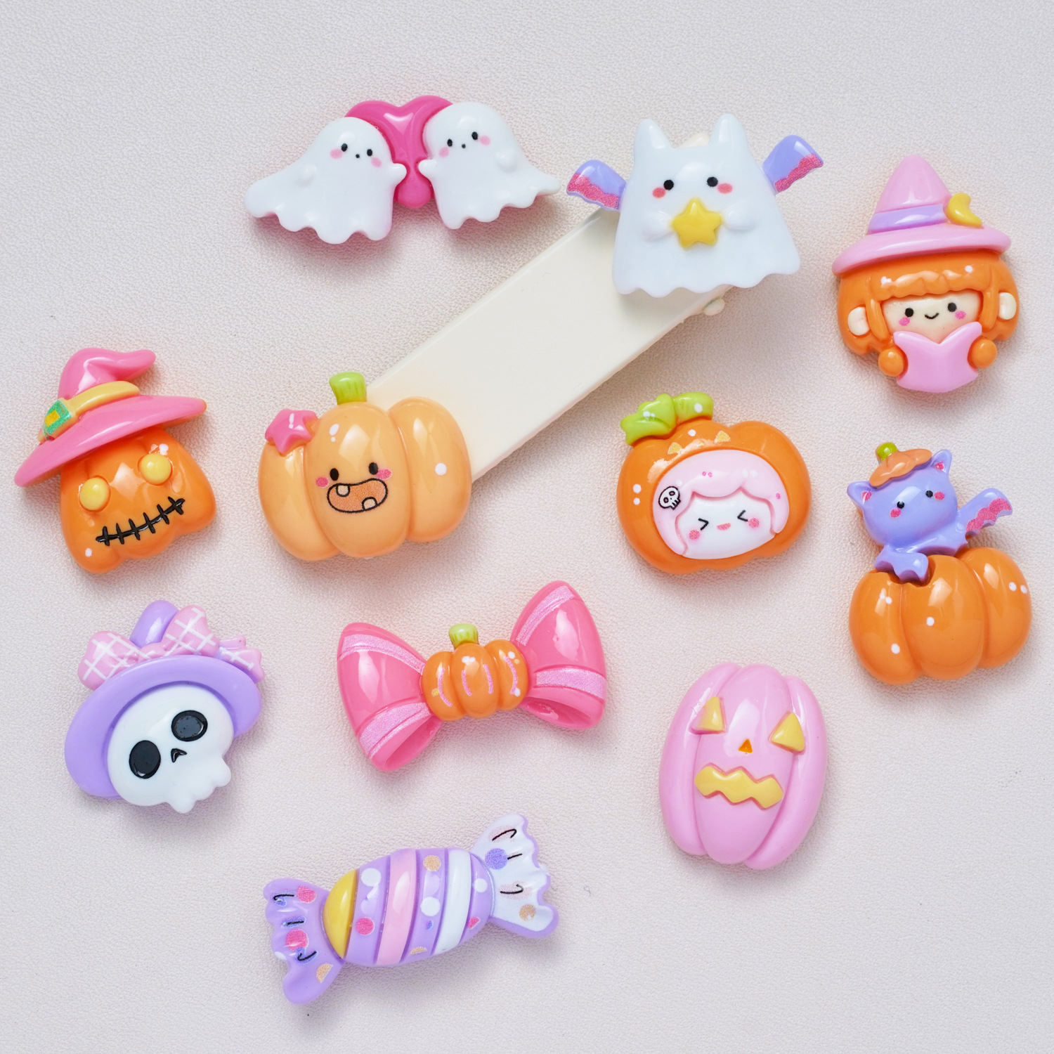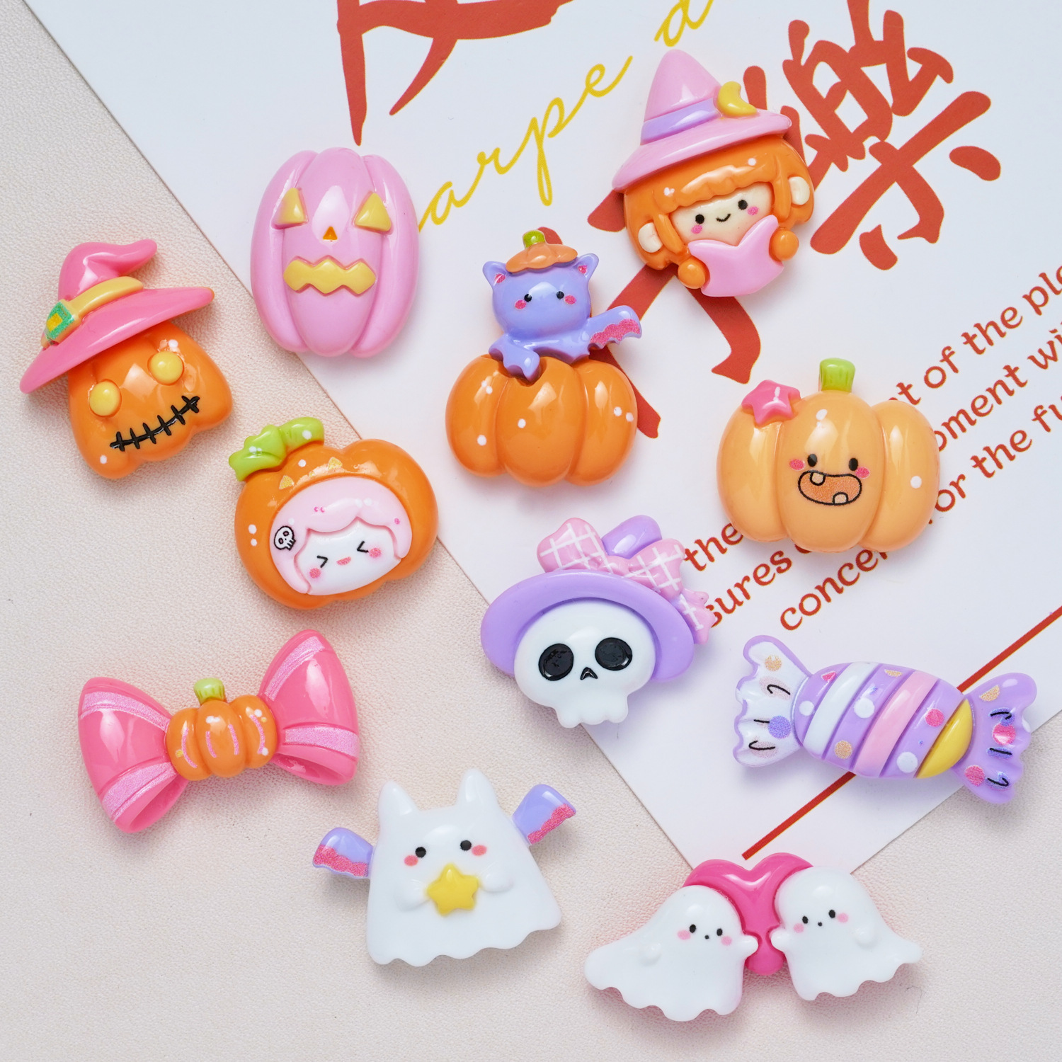 Color: mixed color random, 1# Mage, 2# candy, 3# pink pumpkin, 4# pumpkin, 5# kitten, 6# wizard hat, 7# skull, 8# Ghost, 9# bow, 10# Head, 11# love