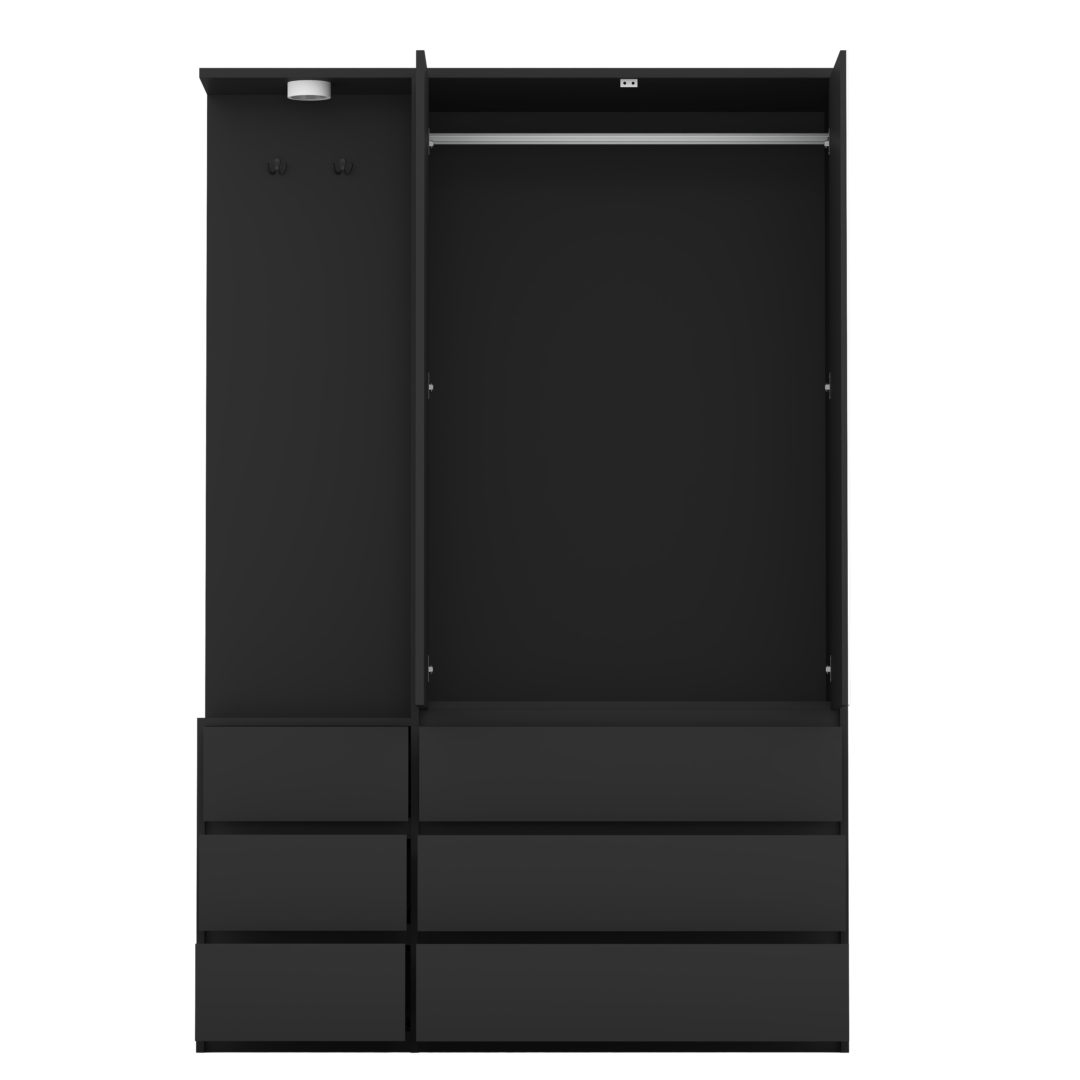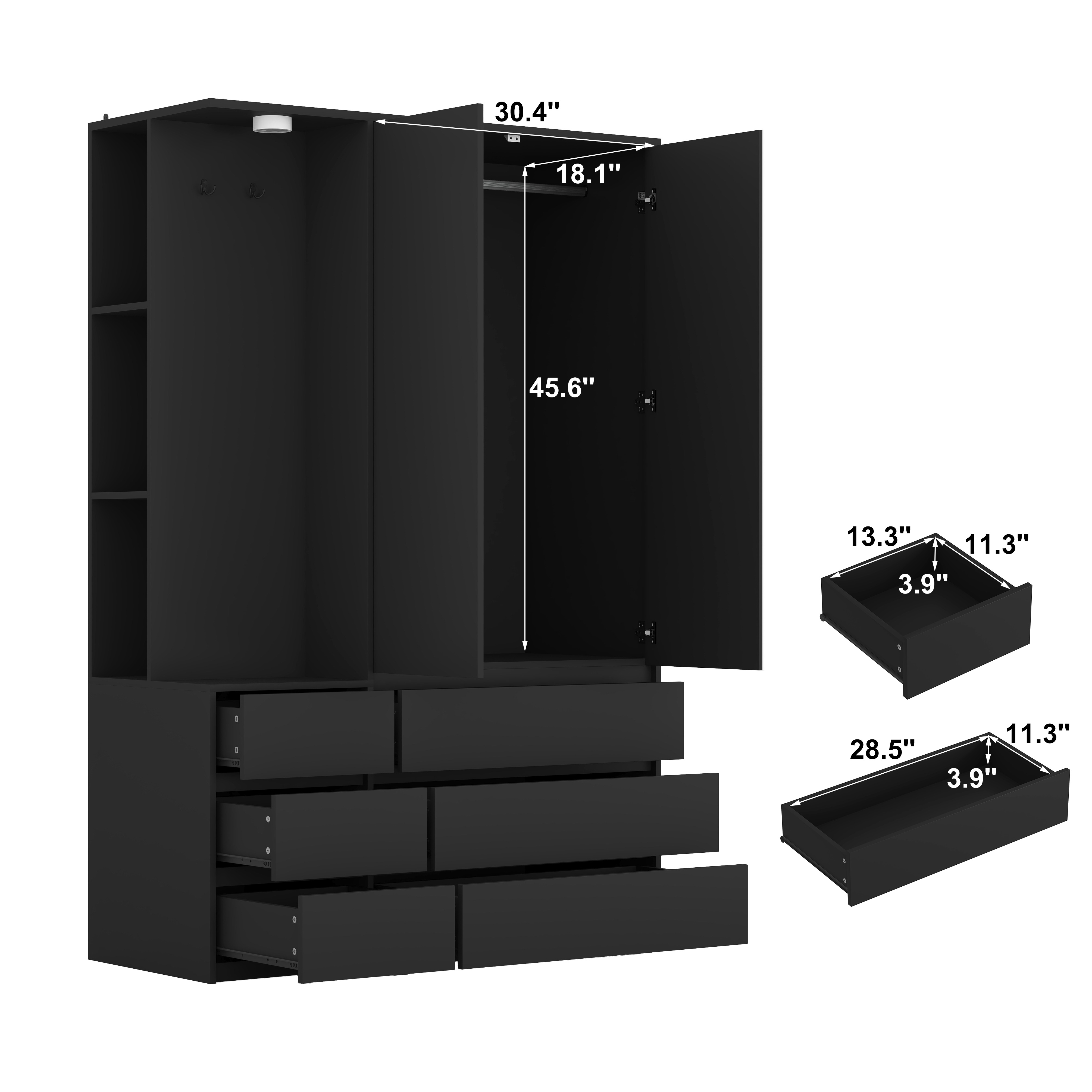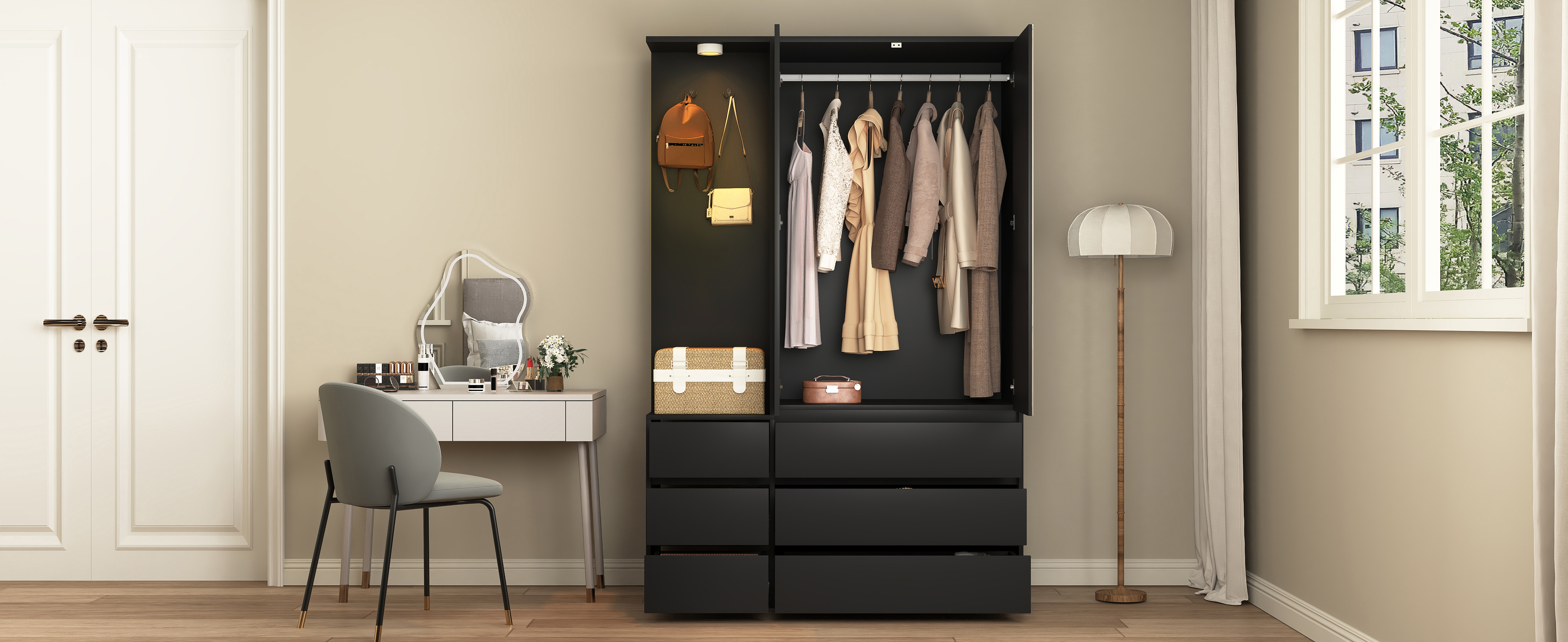 Product Name:Wardrobe Closet 71.7" H, Bedroom Wooden Wardrobe with 2 Doors 6 Drawers, Modern Clothing Storage Cabinet Combination with Storage Shelves and Hanging Rail, Black