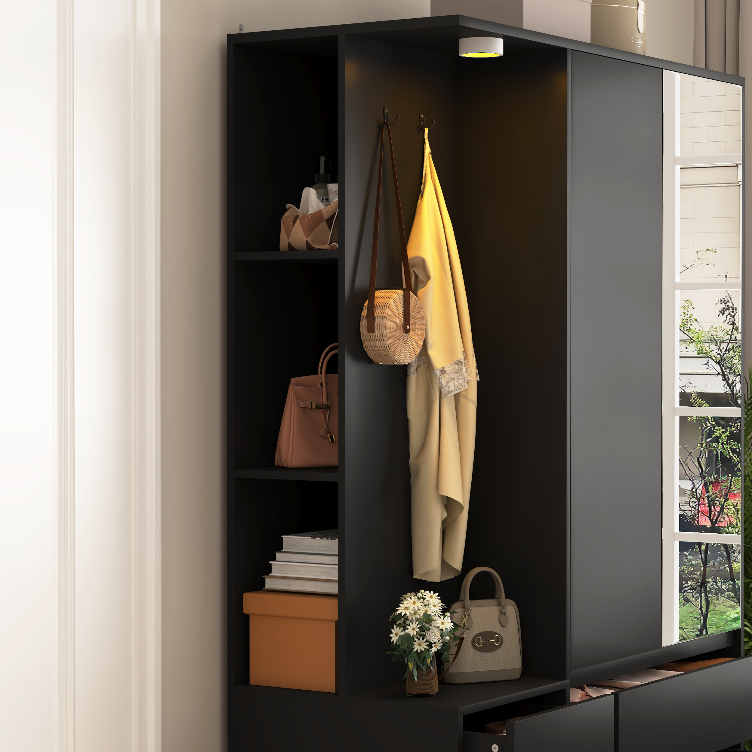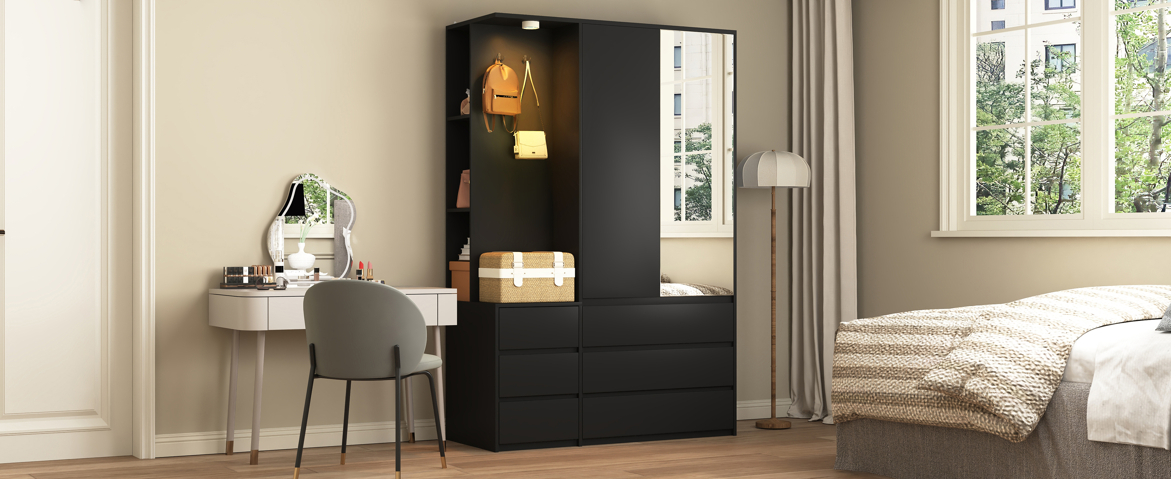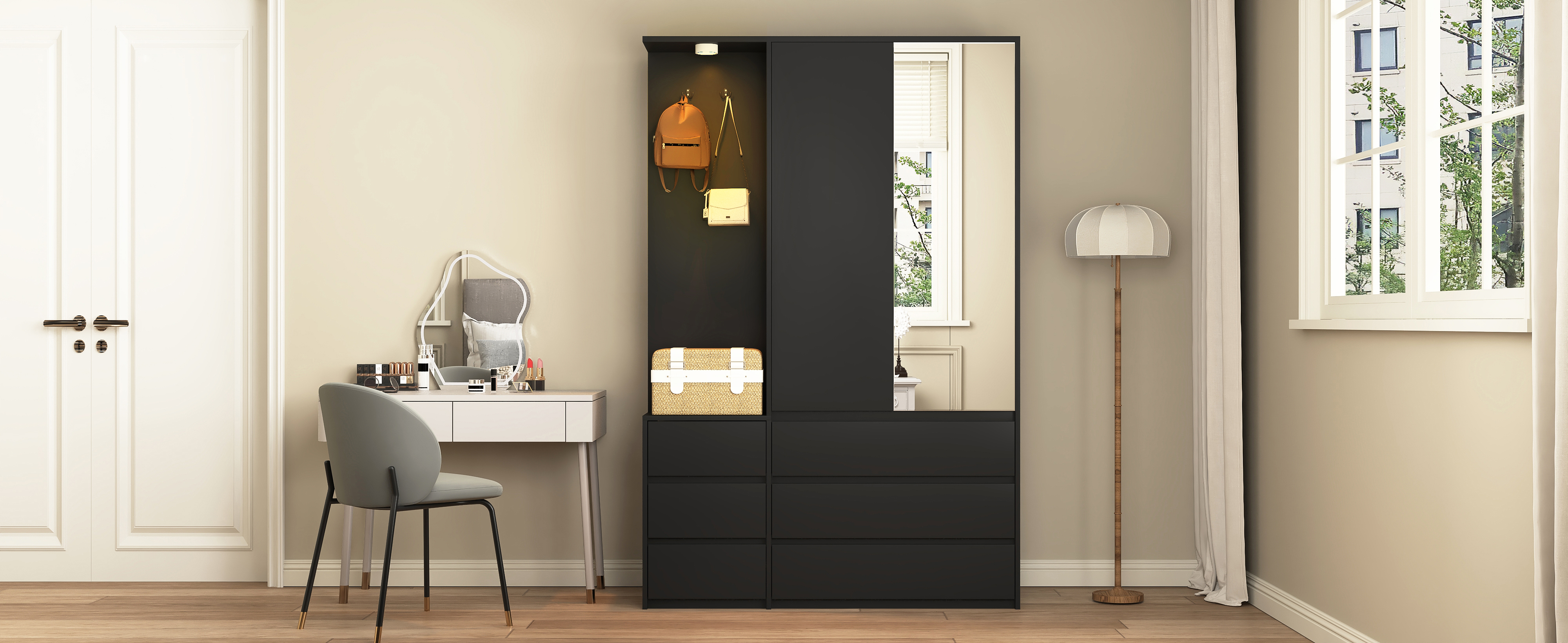 Product Name:Wardrobe Closet 71.7" H, Bedroom Wooden Wardrobe with 2 Doors 6 Drawers, Modern Clothing Storage Cabinet Combination with Storage Shelves and Hanging Rail, Black