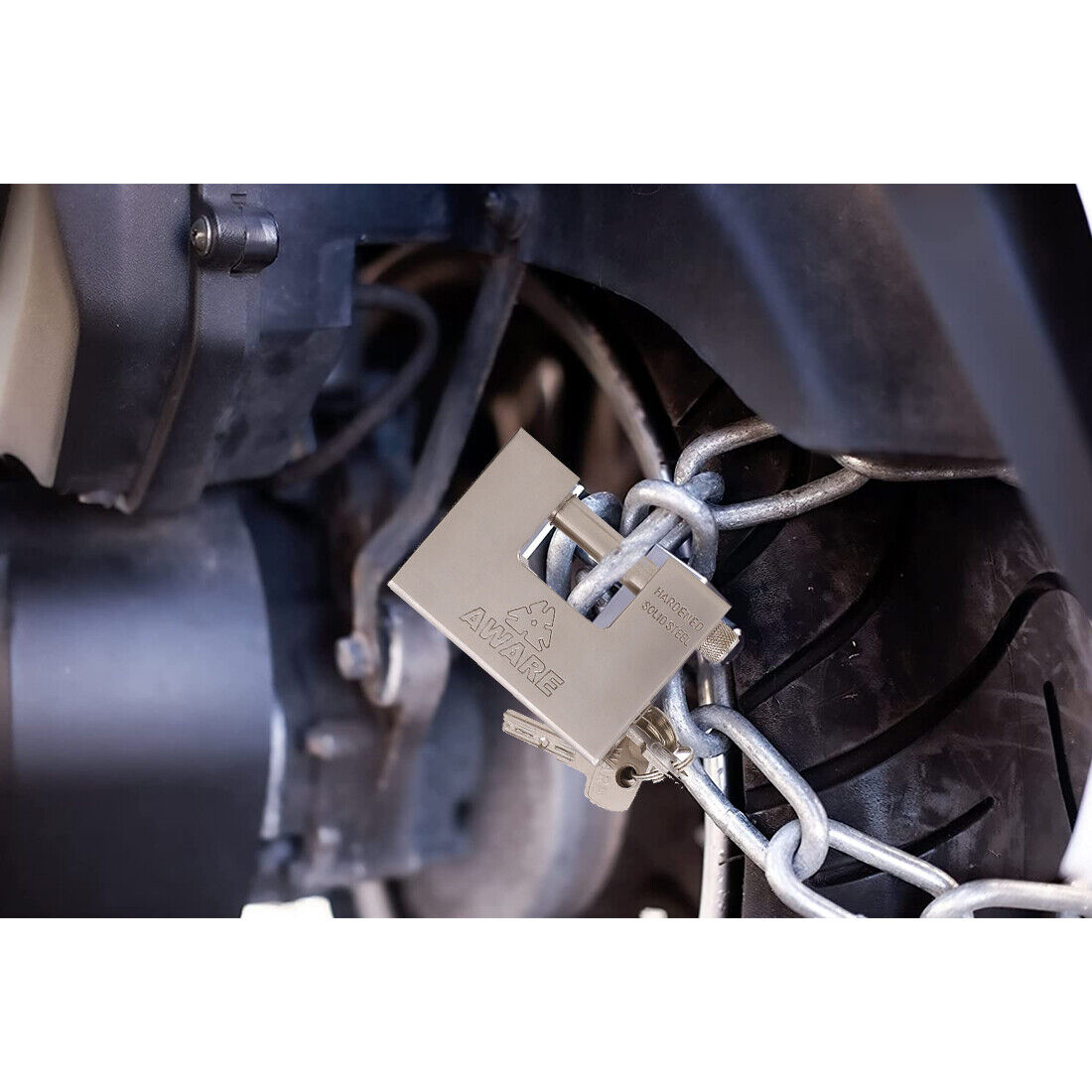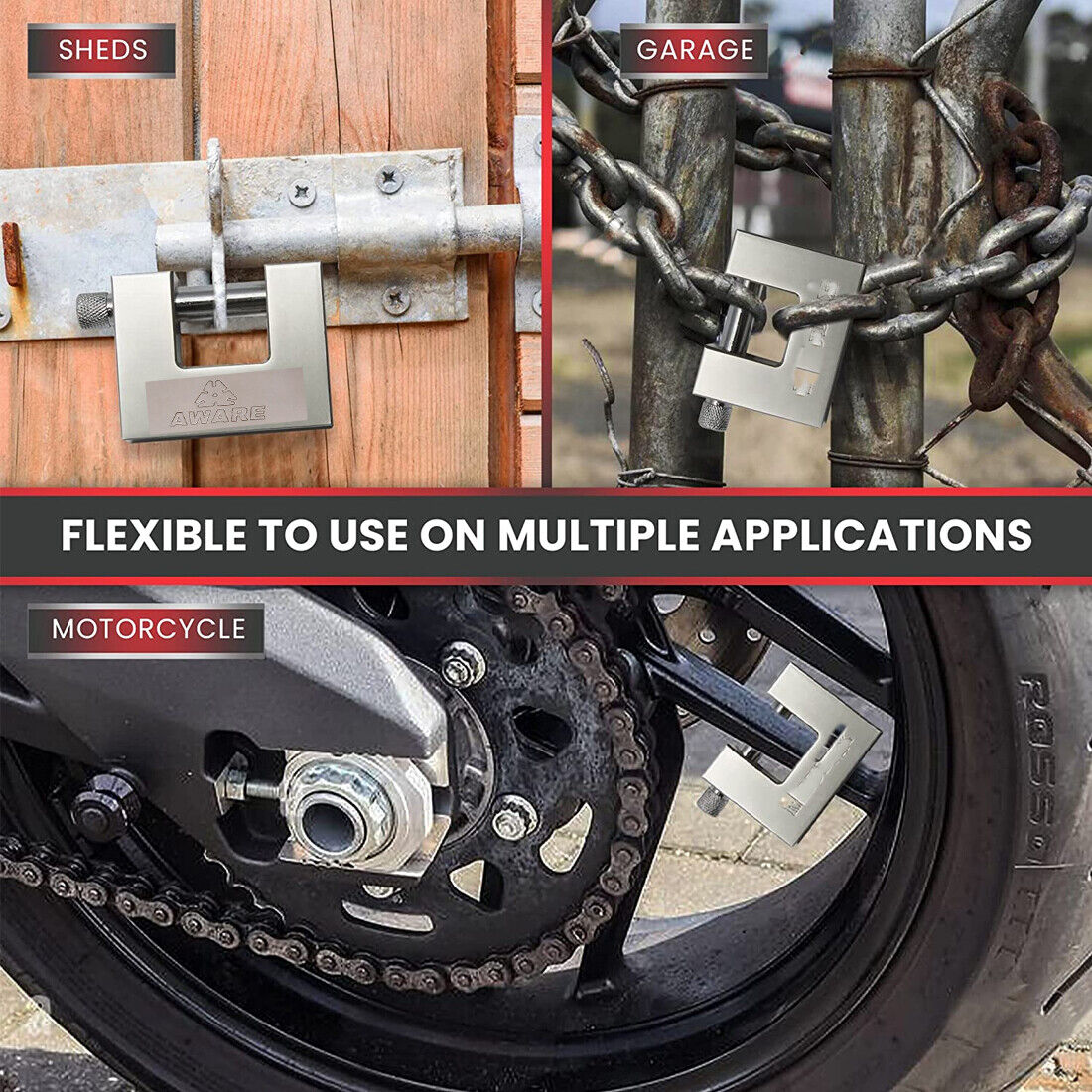 - ULTIMATE SECURITY: The lock is super tough. With its hardened, solid steel body it has high strength and is extremely durable. Each lock has a rotating shackle/closed shackle making this lock anti-drill and anti saw. The lock has been designed with security in mind leaving no weak spots.