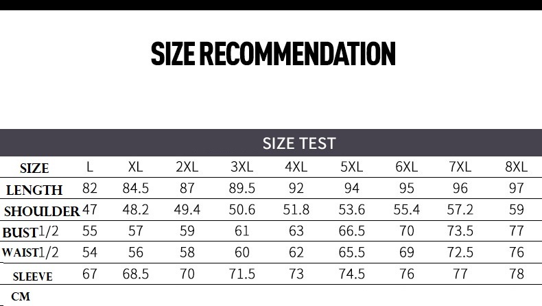 Size: L,XL,XXL,3XL,4XL,5XL,6XL,7XL,8XL