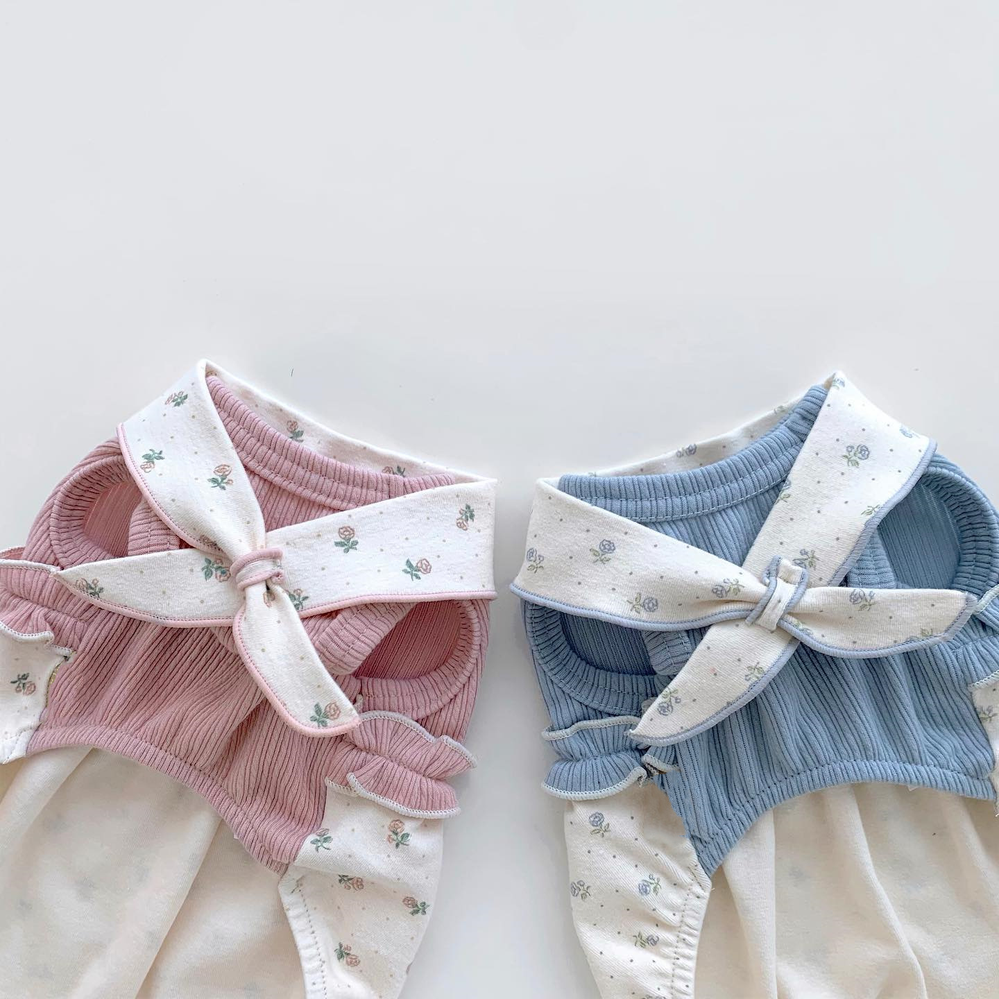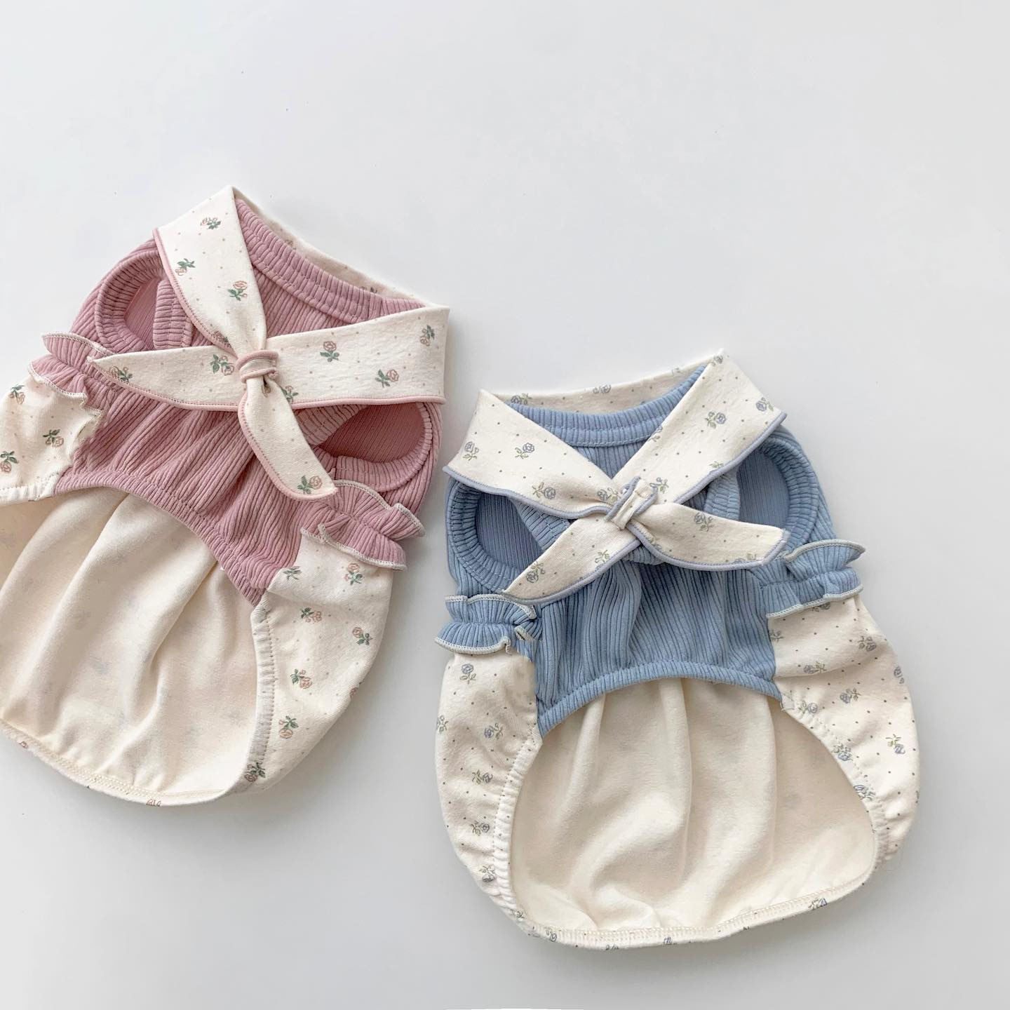 Color: pink floral scarf vest, blue floral scarf vest