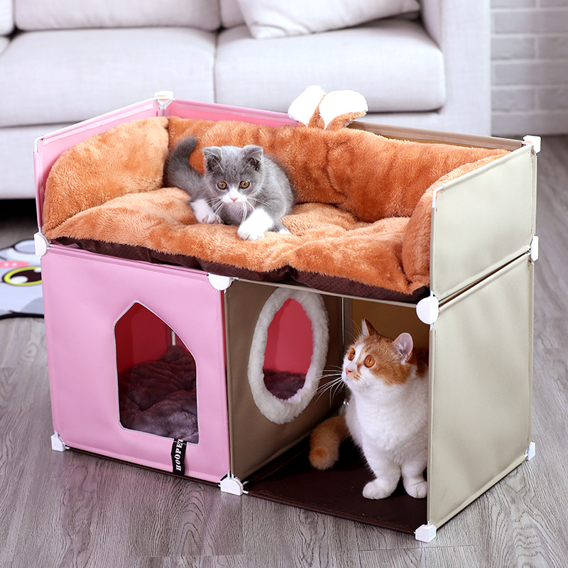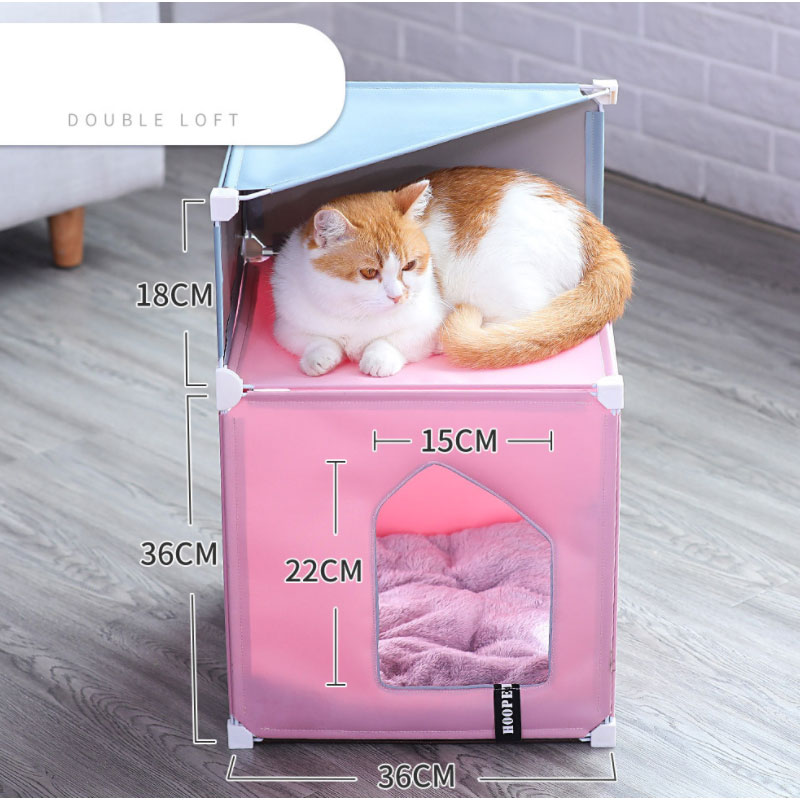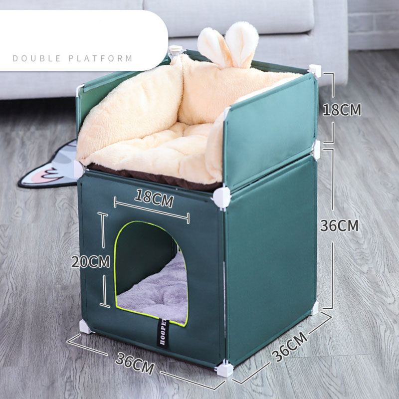 Trade Name: Four seasons Available Cat warm nest (blue) S/ Four seasons Two-layer warm nest (green) S/ Four Seasons Balcony two-layer nest (pink) S/ Four Seasons DIY Double Cat Villa (green) S