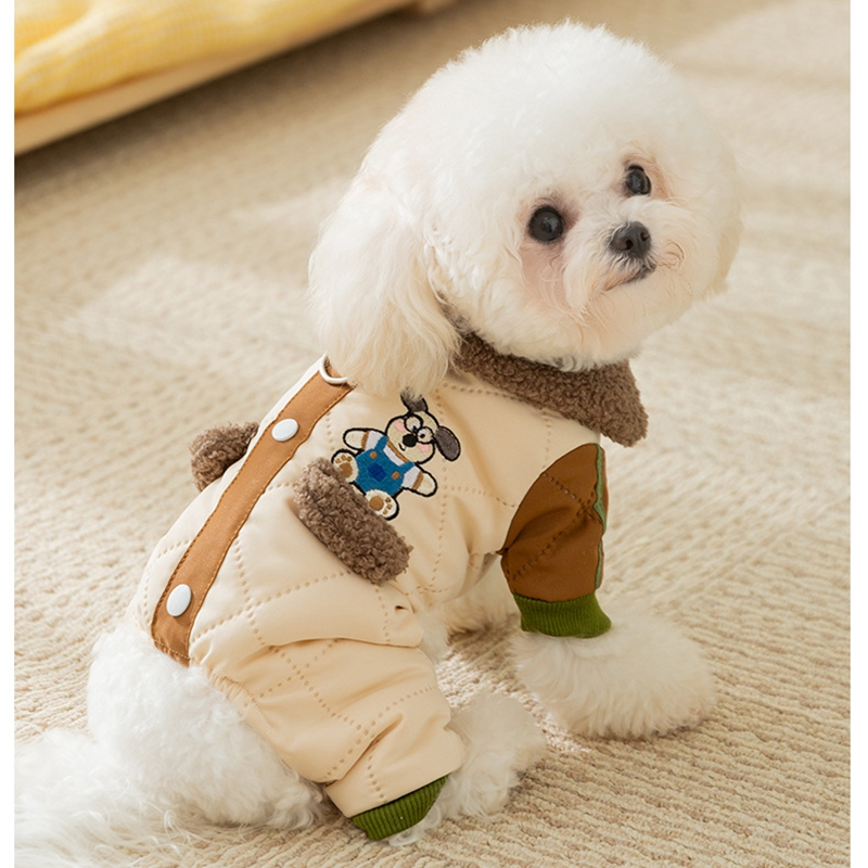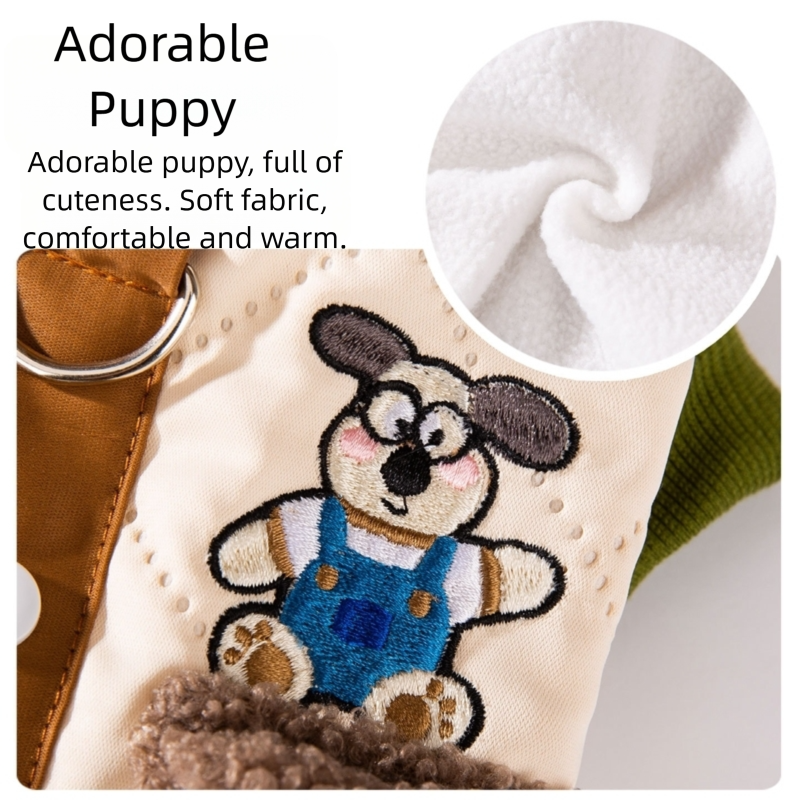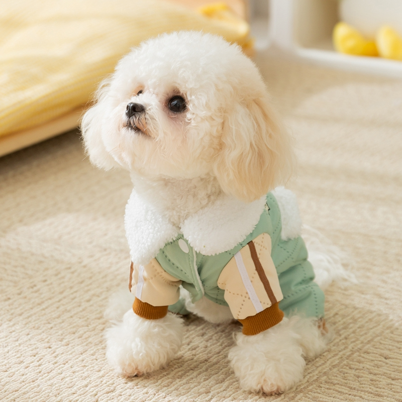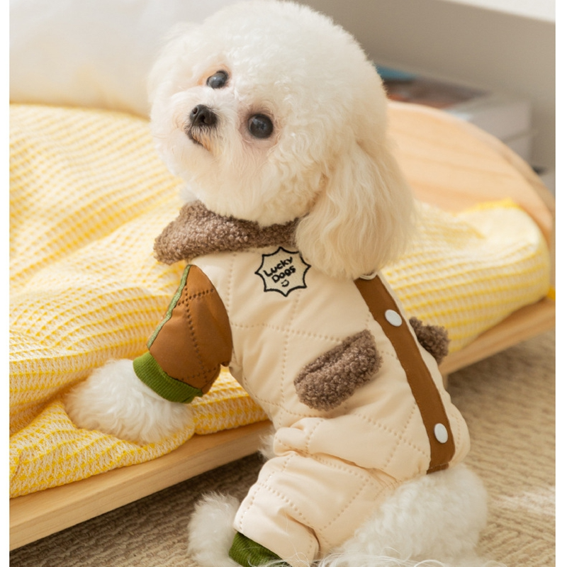 Keep your small dog cozy and charming with this Lucky Dog Pet Jumpsuit! Featuring a quilted light green design, fleece-lined collar and pockets, a cute dog embroidery, and a "Lucky Dogs" patch, it’s perfect for stylish comfort. The integrated leash ring adds practicality for walks, while the soft, warm fabric ensures your pet stays snug. Ideal for cooler days or casual outings, this jumpsuit combines cuteness, functionality, and warmth, making it a must-have for pet parents who love to dress their furry friends in adorable, practical fashion.