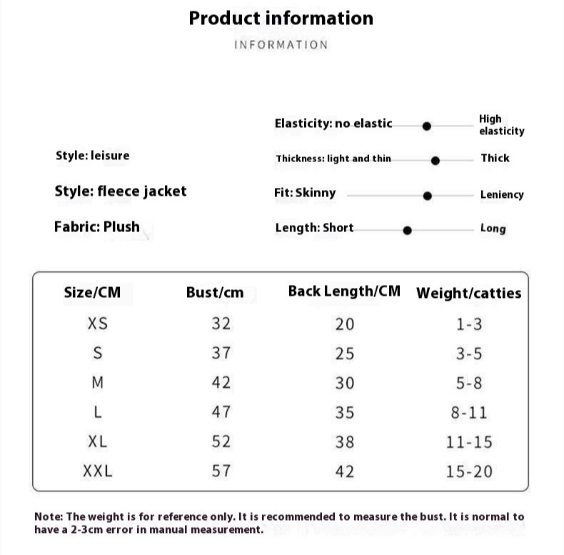 Product information:Applicable gender: general Material: Polyester Size: XS/S/M/L/XL/XXL Category: pet clothing