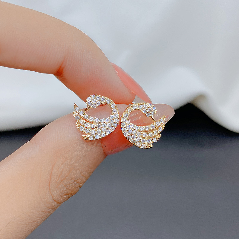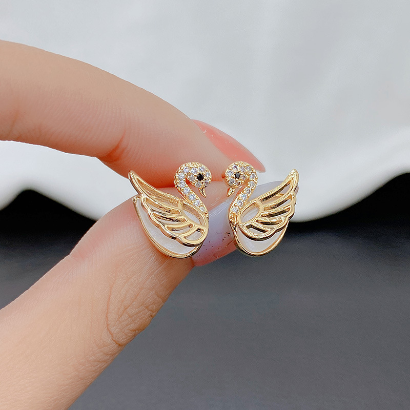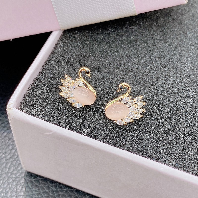 Warm Cat Eye Stone Swan Elegant Super Fairy Earrings