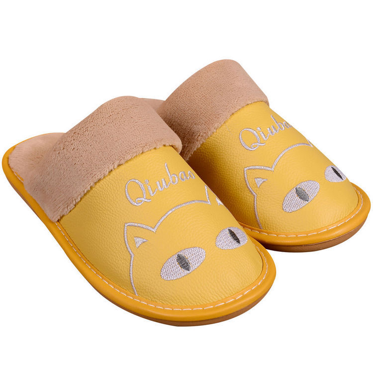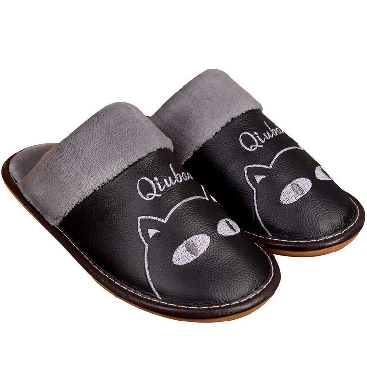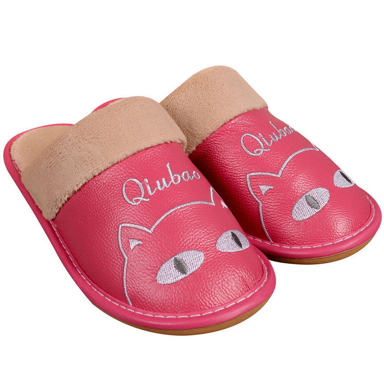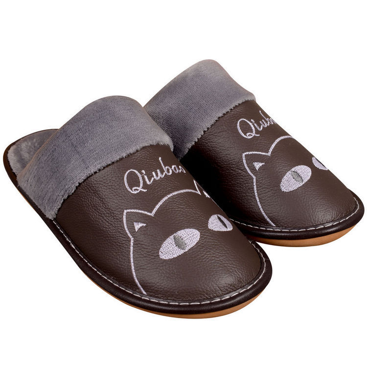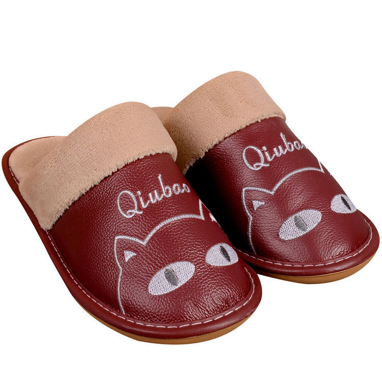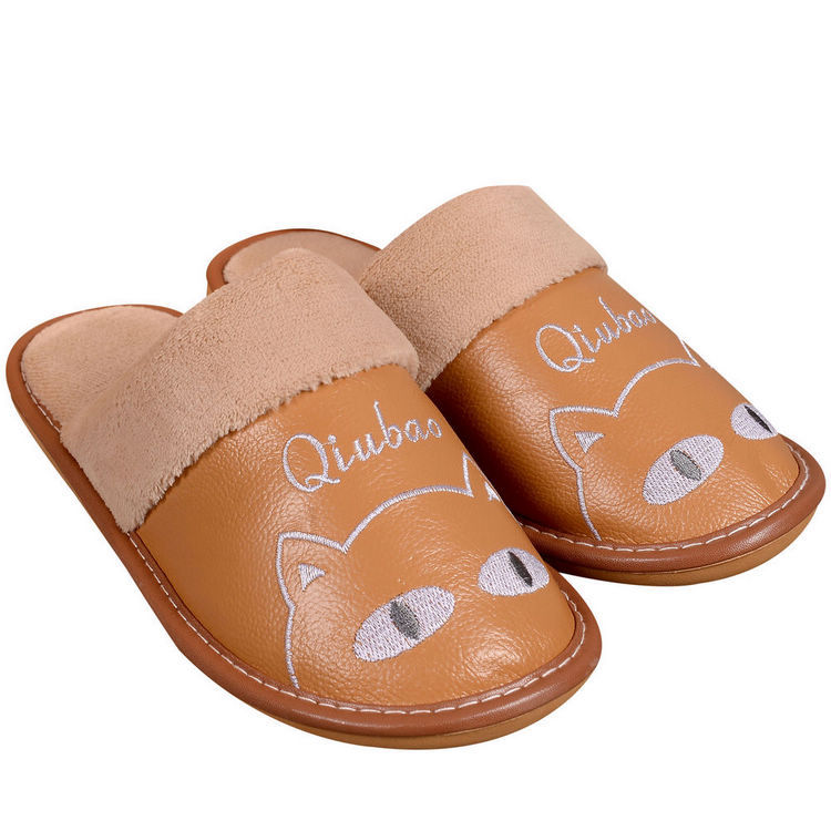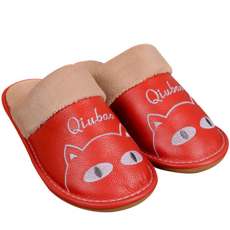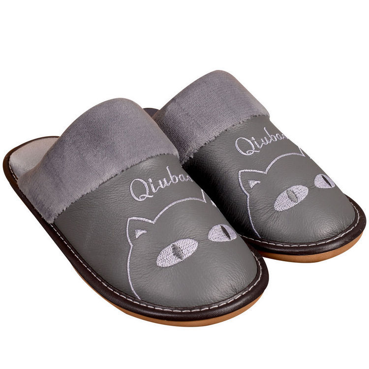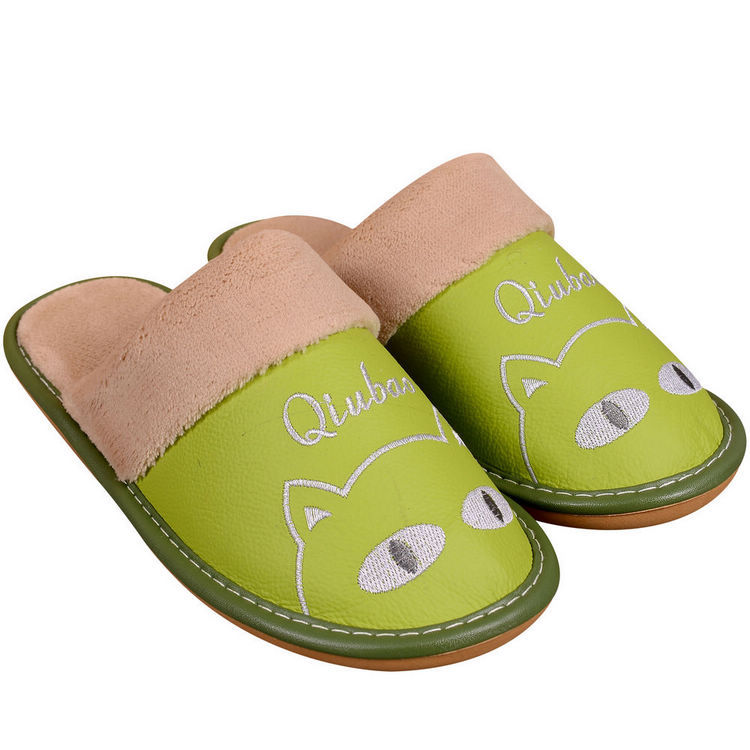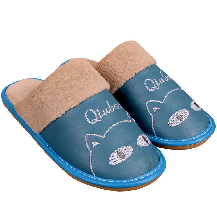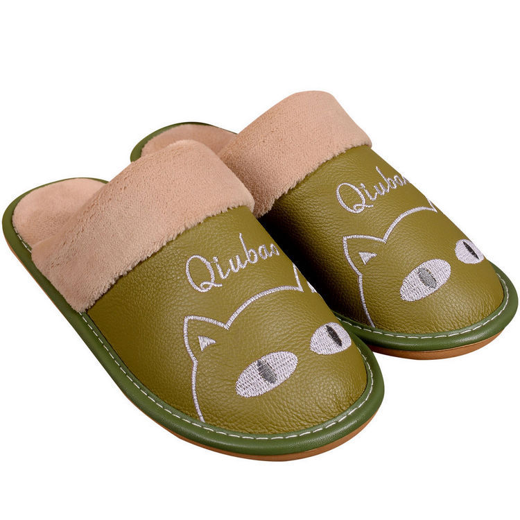 Warm Cotton Slippers For Couples Parent-child Non-slip Leather And Wool Slippers