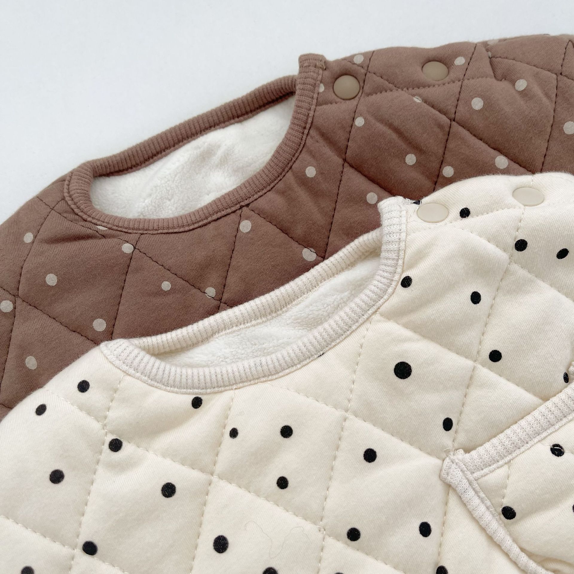Color: small beige embroidered quilted single pocket long sleeve pullover coat-wool lining, small light coffee embroidered quilted single pocket long sleeve pullover coat-wool lining