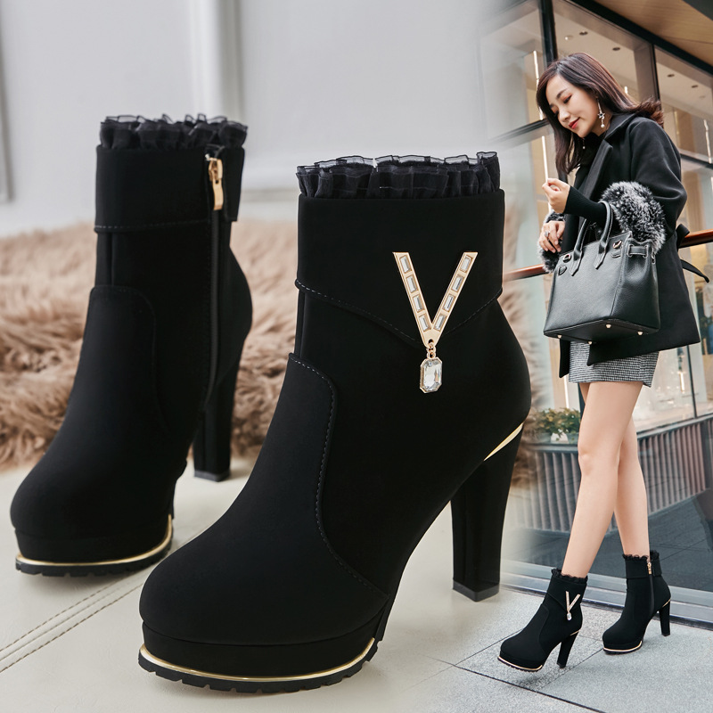 Warm Fashion Boots Thick Heel Solid Color Side Zipper Waterproof Women's Short Boots