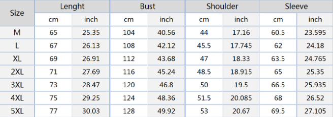 Size: M, L, XL, XXL,XXXL,4XL,5XL