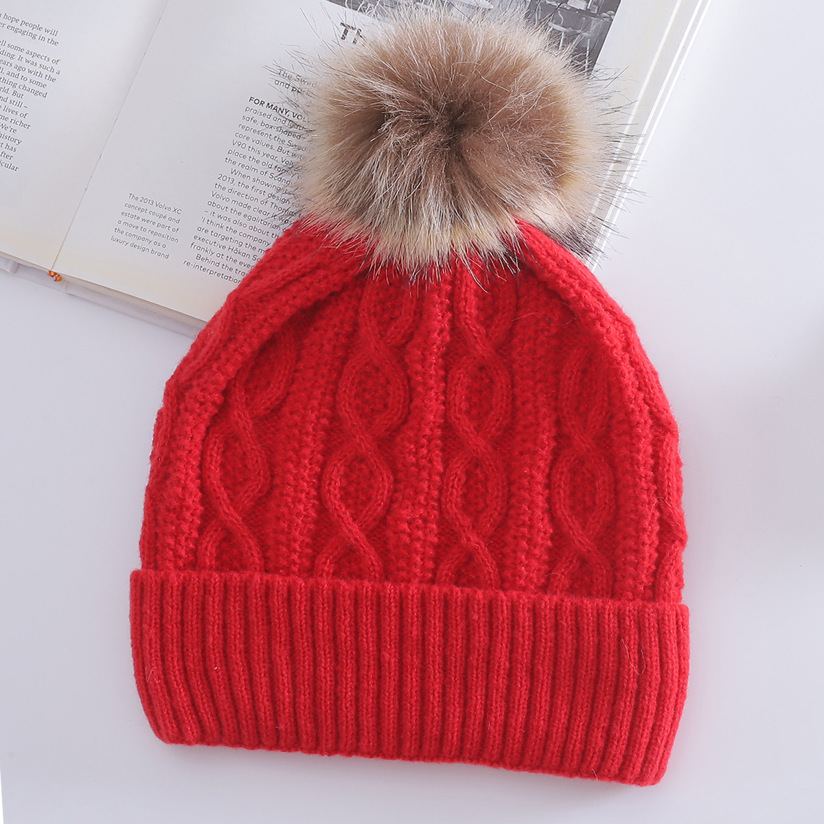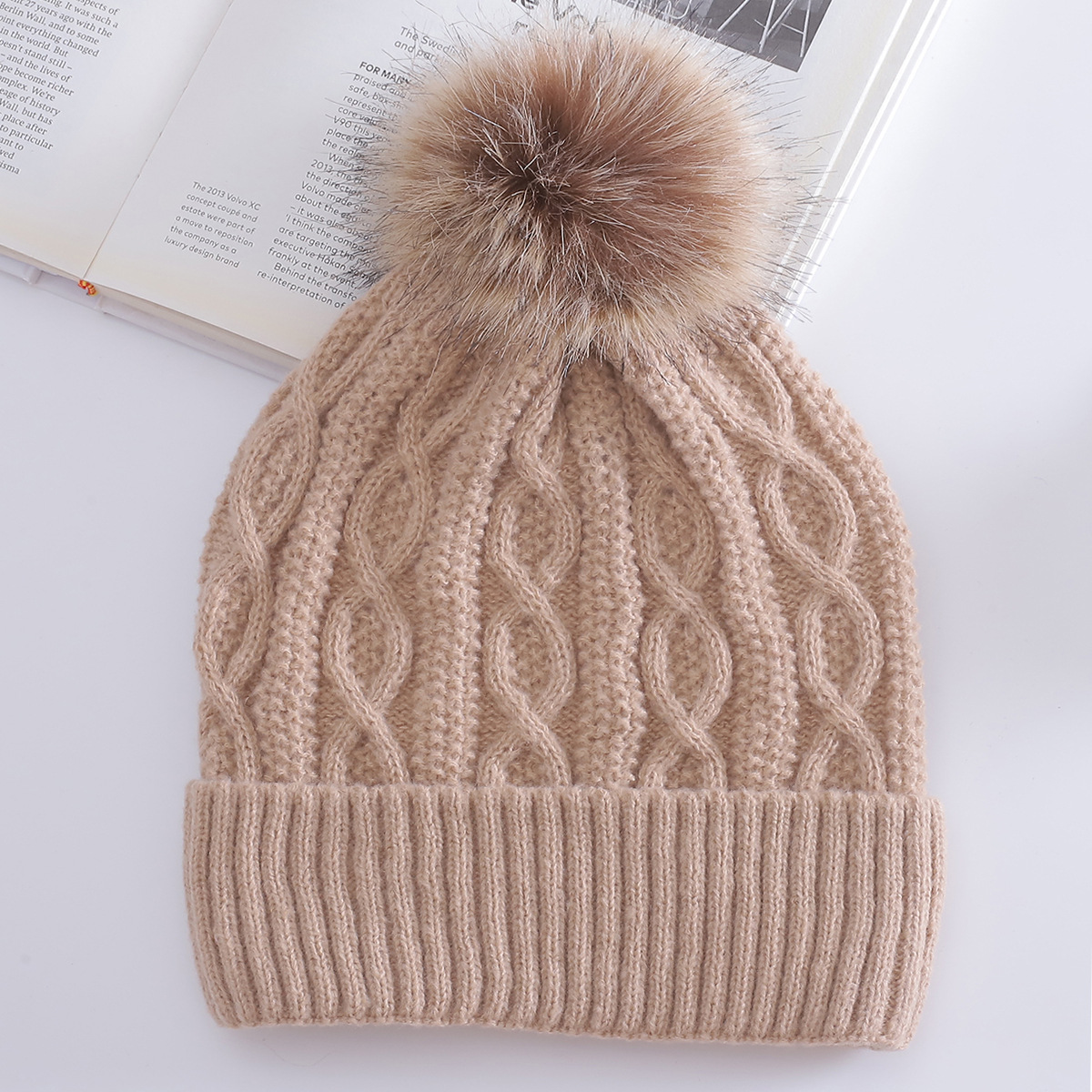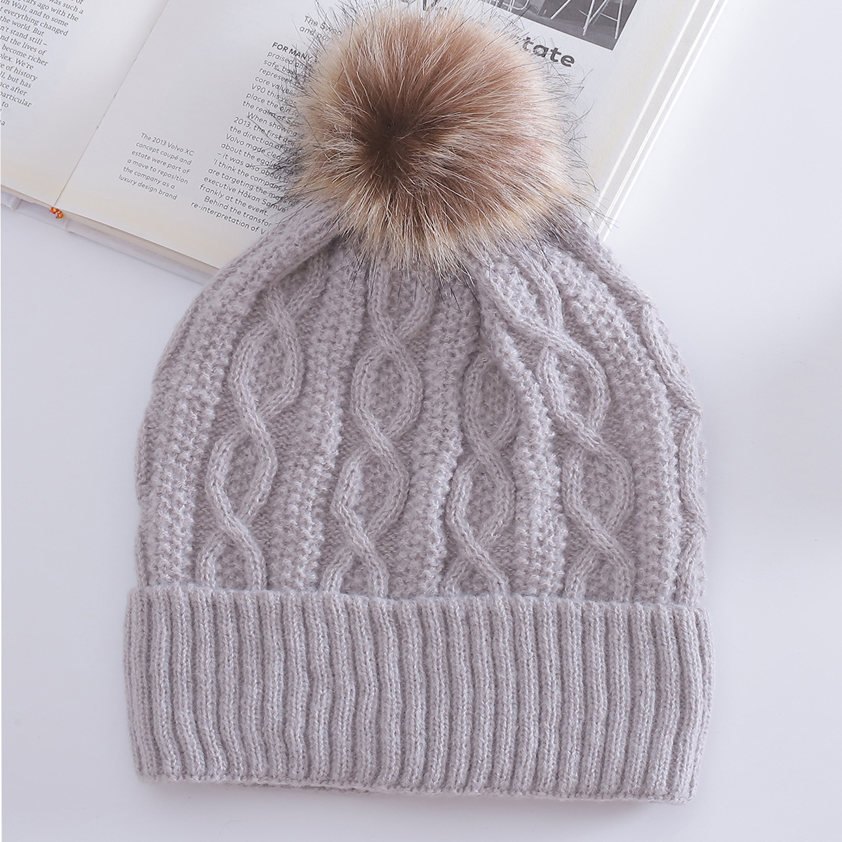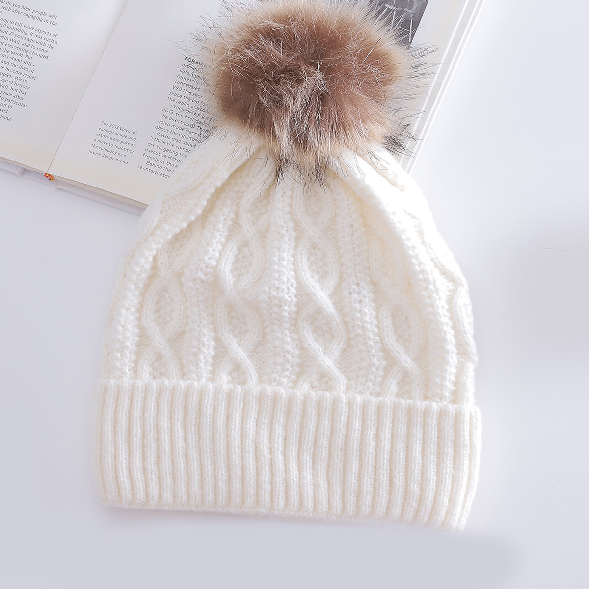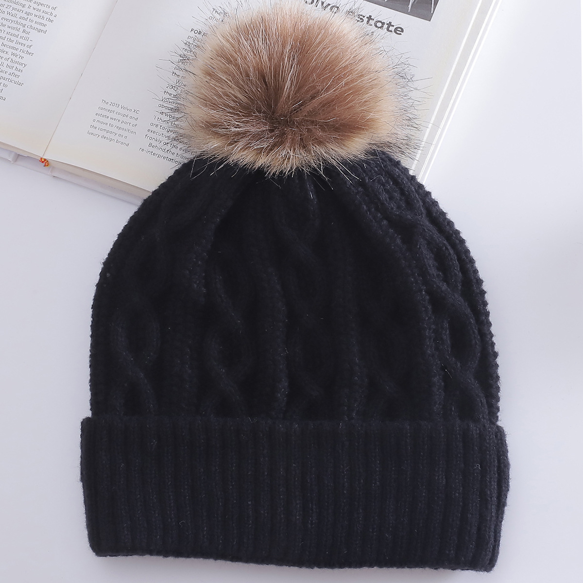 Warm Leisure Flanging Pompons Knitted Hat