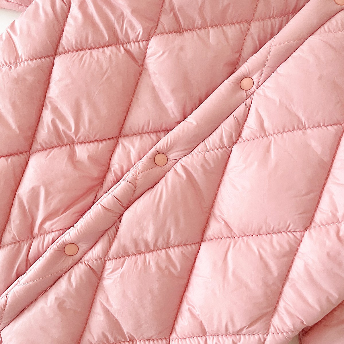 Color: BRW2268-BL blue diamond lattice fleece trench coat cotton jacket, BRW2268-PK pink diamond lattice fleece trench coat cotton jacket, BRW2268-BE apricot diamond lattice fleece trench coat cotton jacket