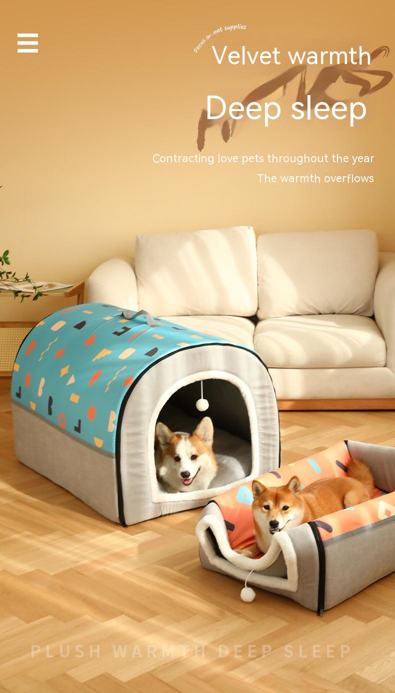 Warm Semi-enclosed Removable And Washable Two-color Geometric Pattern House Kennel