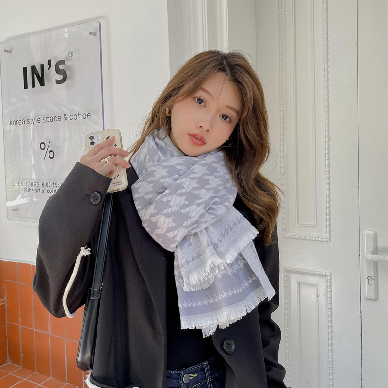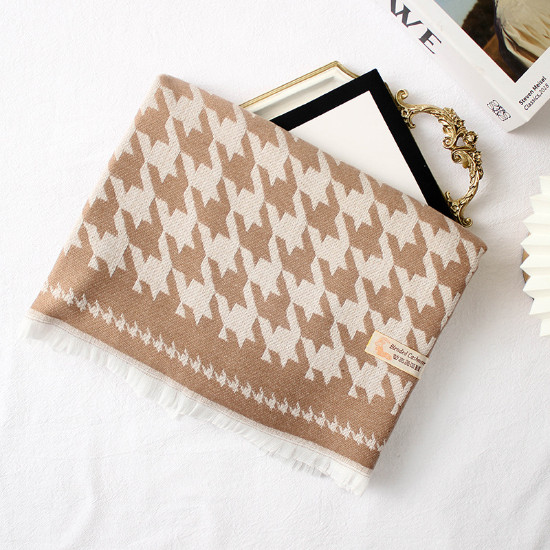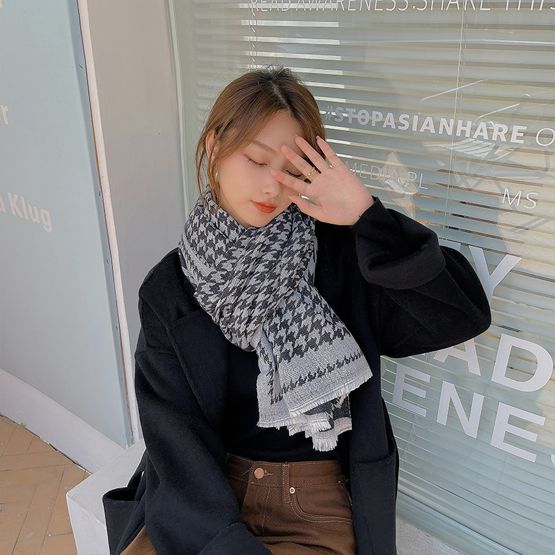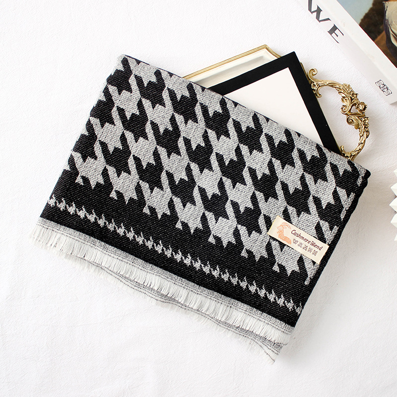 Warm Shawl Size Houndstooth Long Short Beard Scarf
