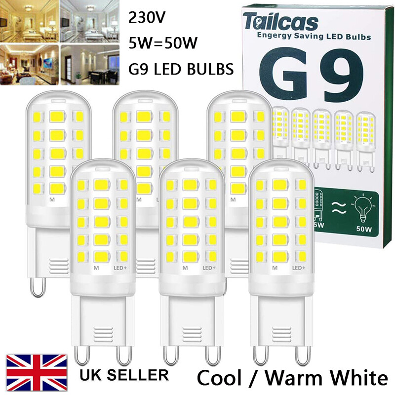 6 Pack G9 5W=50W LED Standard Light Bulbs Long Life Energy Saving Capsule Lamps 230V Cool/Warm White Lighting Replace Halogen UK
