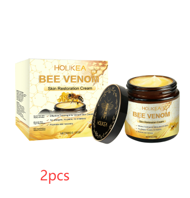 Bee venom, peppermint leaf extract, tea tree oil and cypress leaf extract.