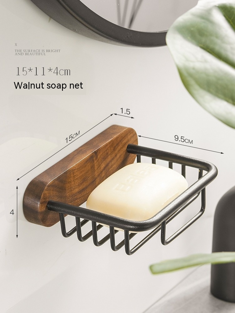 Color: Punch-free walnut black [single soap dish], punch-free walnut black [double soap dish]