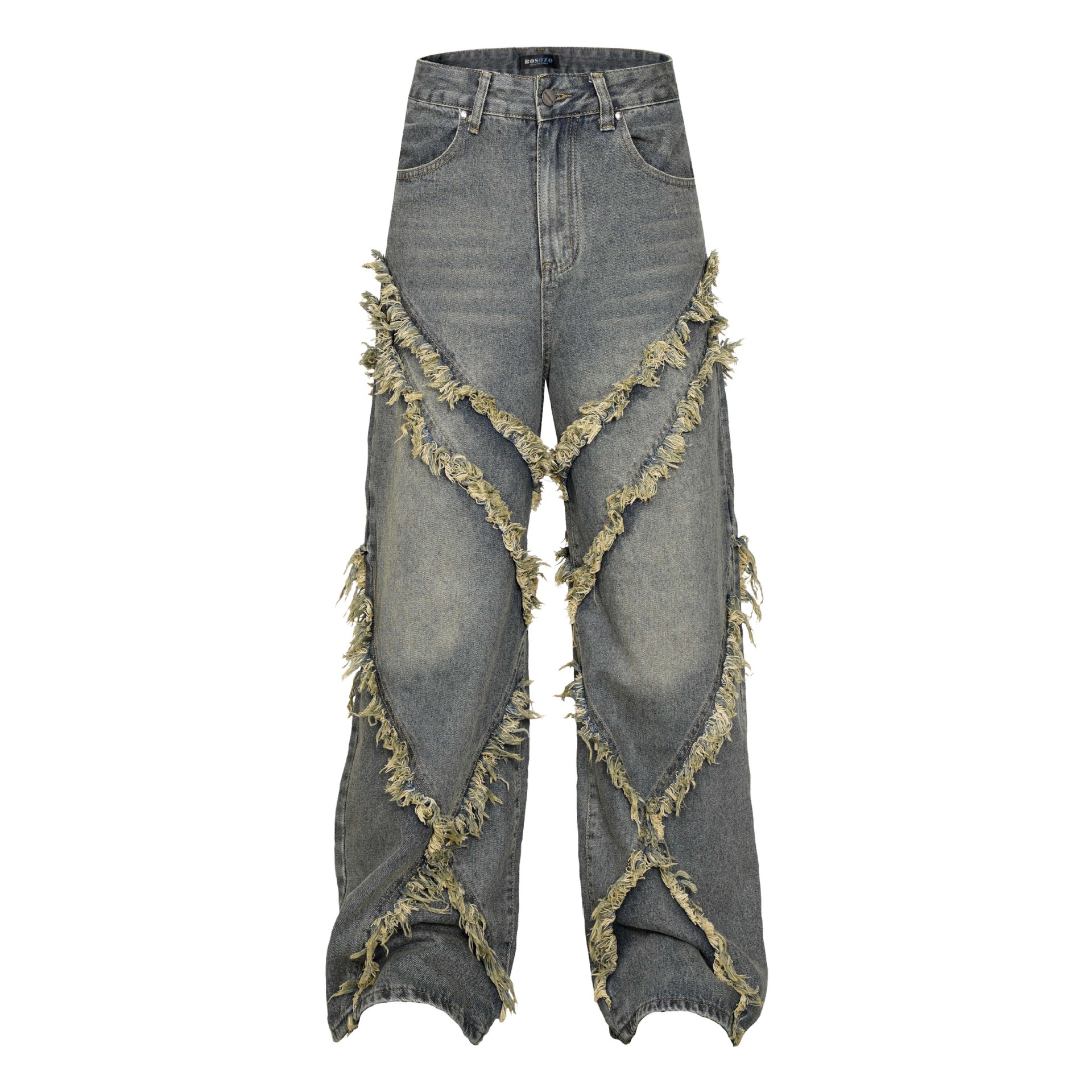 Product information: Washed distressed stitching jeans beard for men and women Color black, blue