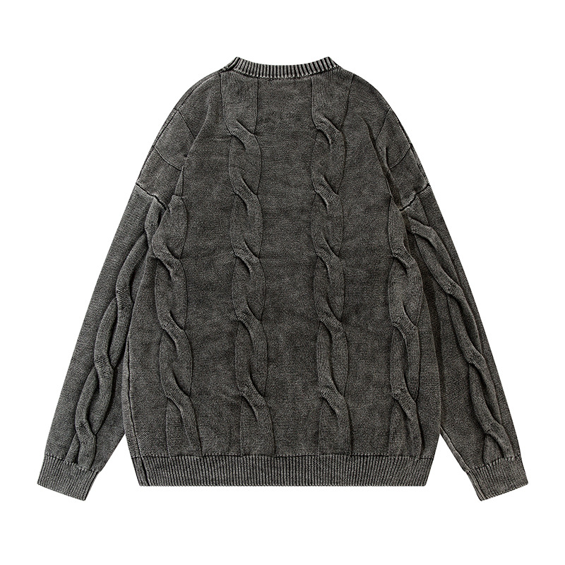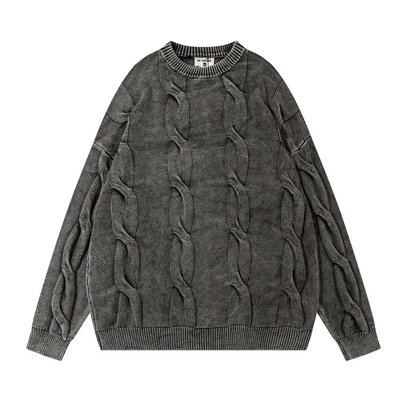 Washed And Worn Men's Autumn And Winter Loose Casual Long Sleeves Twisted Twist Round Neck Sweater Idle Style