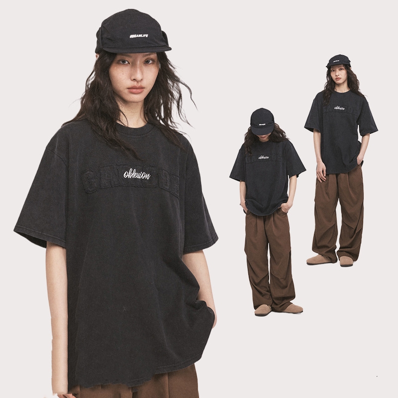 Washed And Worn Cotton Heavy Short-sleeved T-shirt American Retro