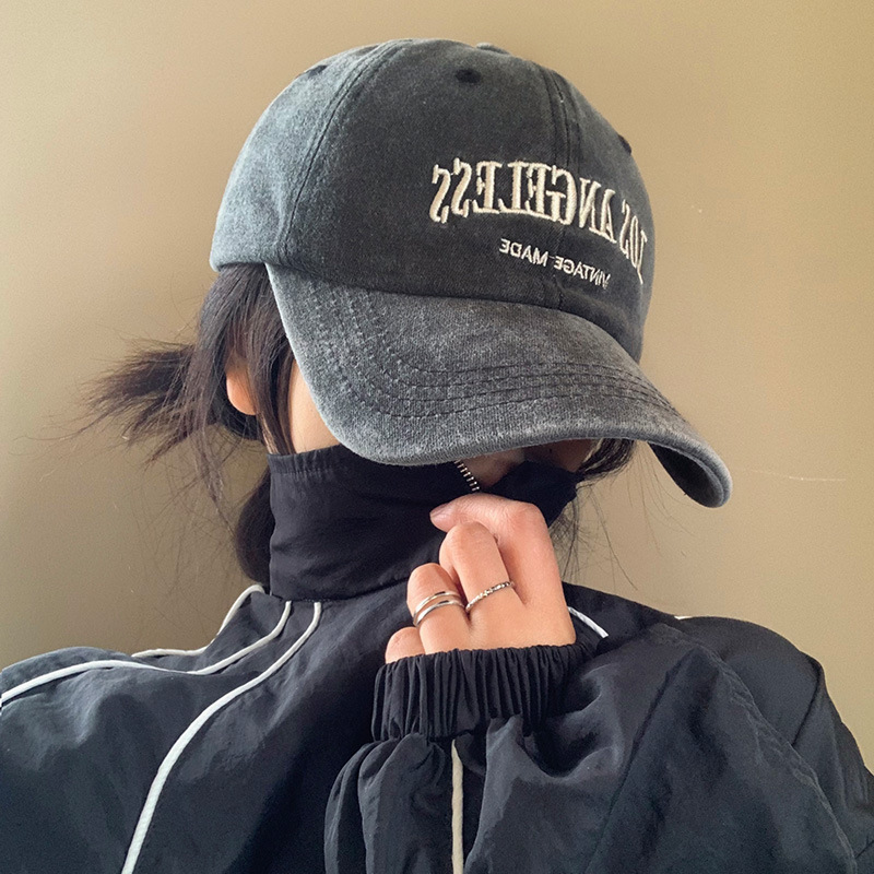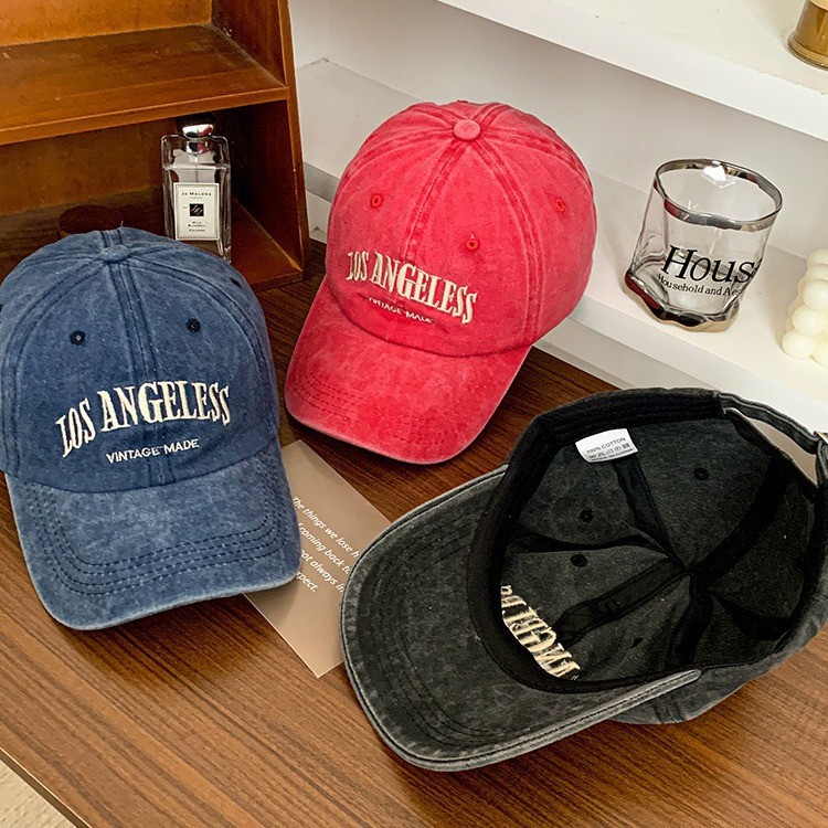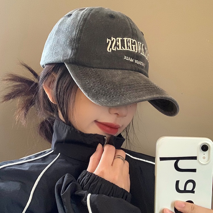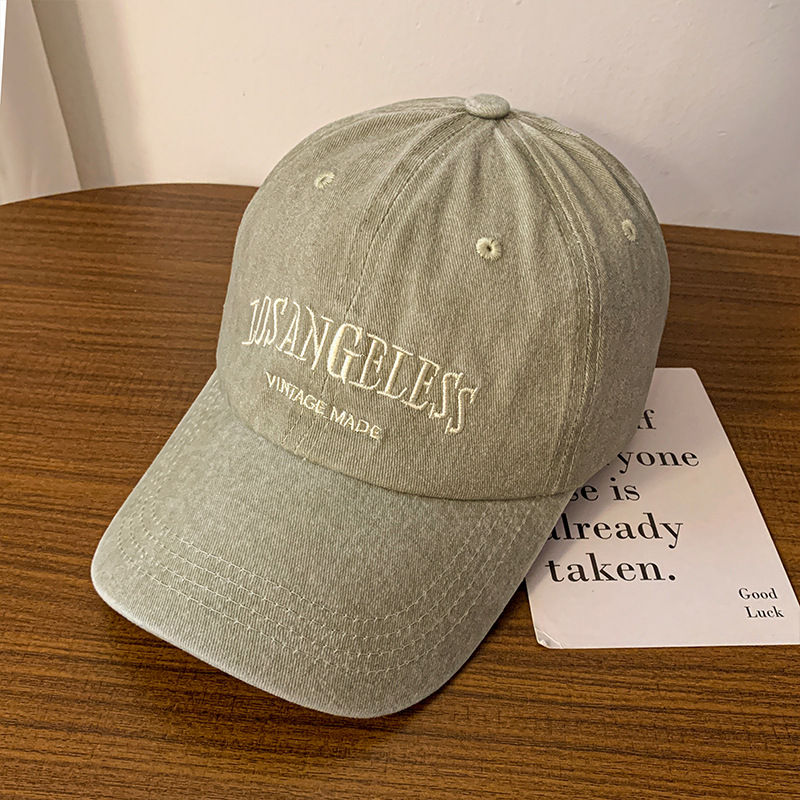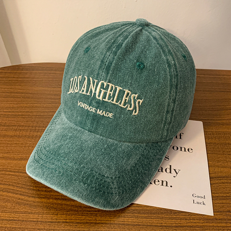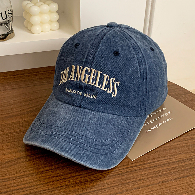 Washed Baseball Denim Letters Embroidered Peaked Cap