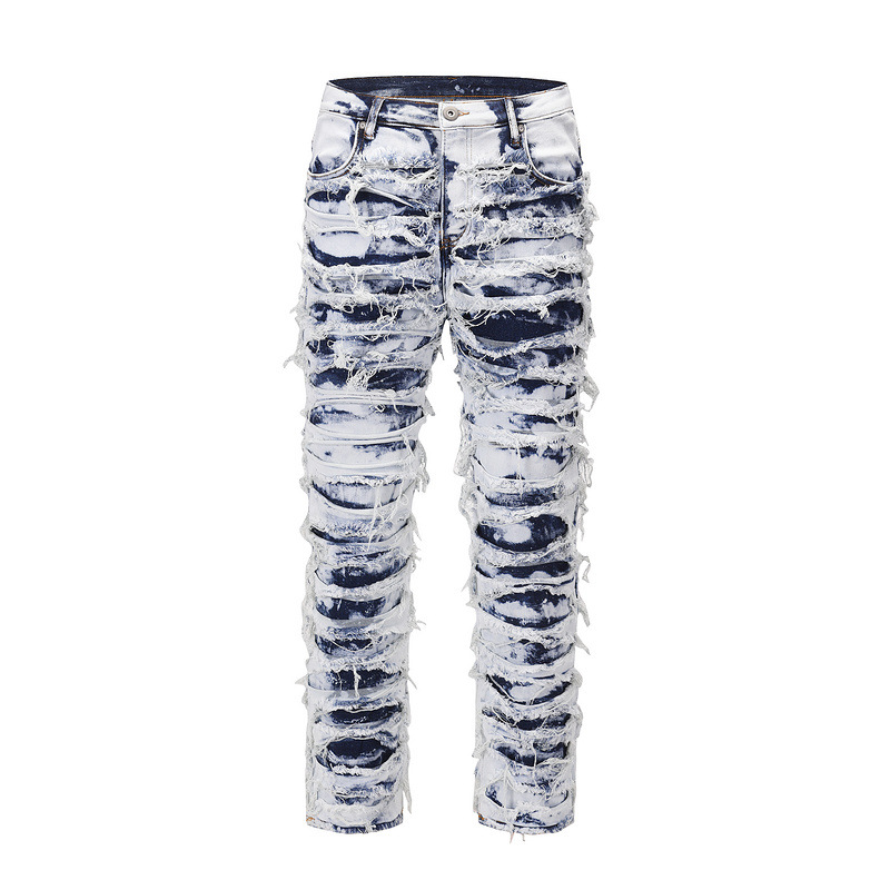 Washed Blue Ripped Zipper Distressed Beggar Pants