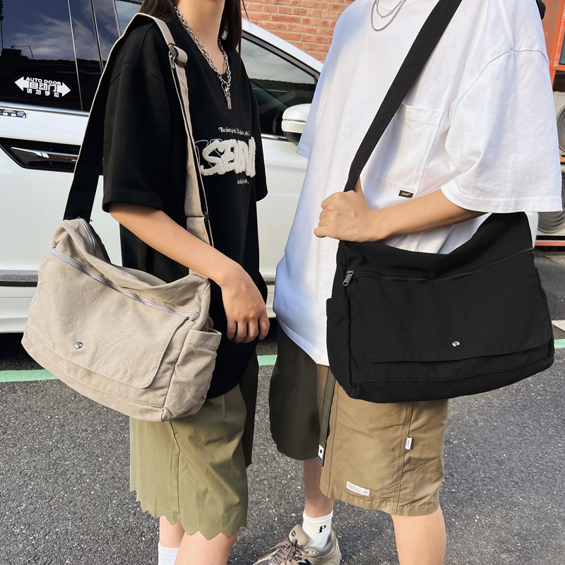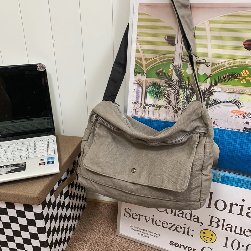 Washed Canvas Draping Women's Artistic Casual Crossbody Bag