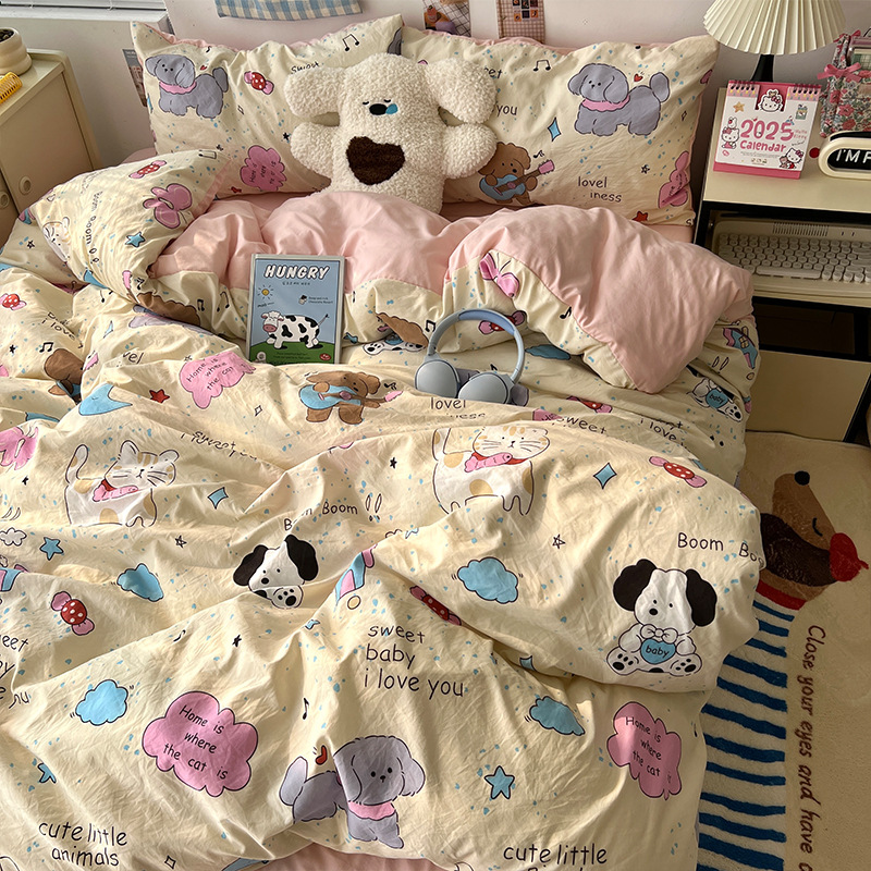 Size specification: 1.5 m bed sheet four-piece set [quilt cover 150*200 bed sheet 180*230 pillowcase 48*74*2]]]], 1.8m bed sheet four-piece set [quilt cover 180*220 bed sheet 235*250 pillowcase 48*74*2], 2.0m bed sheet four-piece set [quilt cover 200*230 bed sheet 235*250 pillowcase 48*74*2]]]]